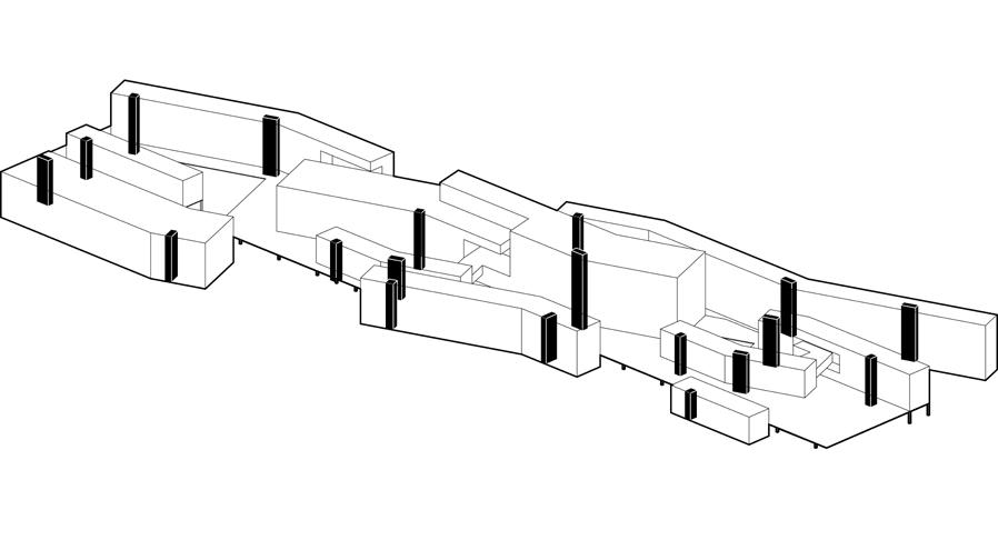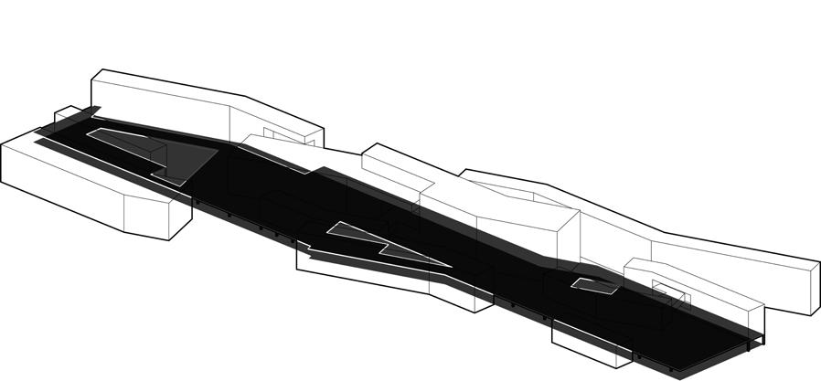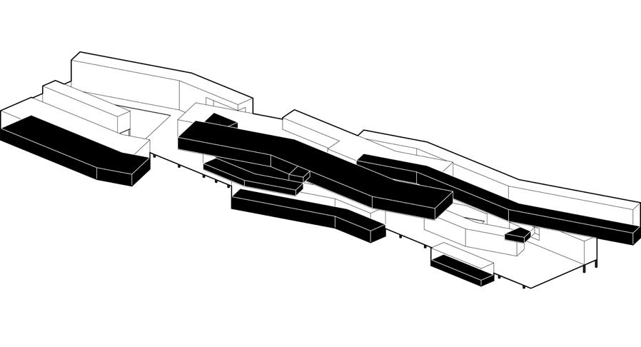 There are two sets of circulation systems inside the building. One is the vertical system that leads people directly to the theater floor, and the other is designed according to the visitor’s touring route by continuous floor slab. The slabs can be used not only as a pass but also as space for people to enjoy the view and events.