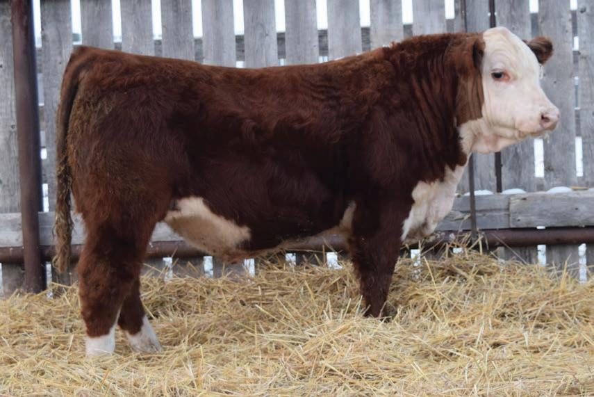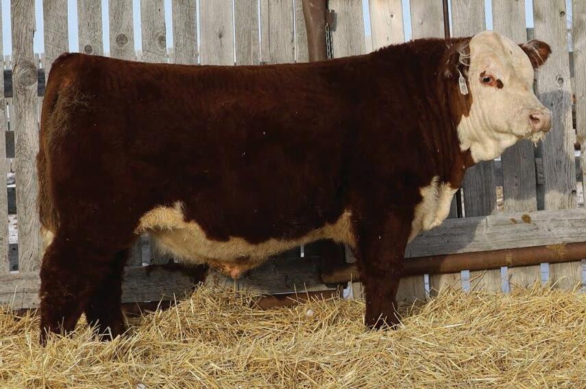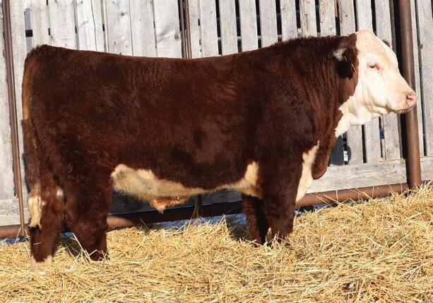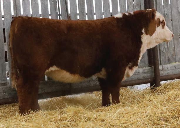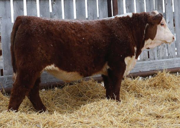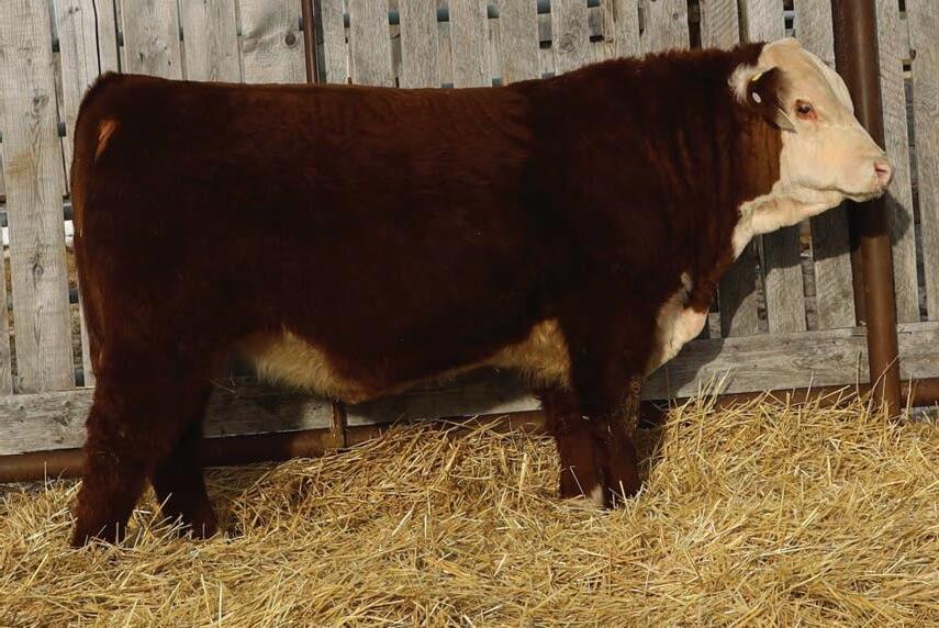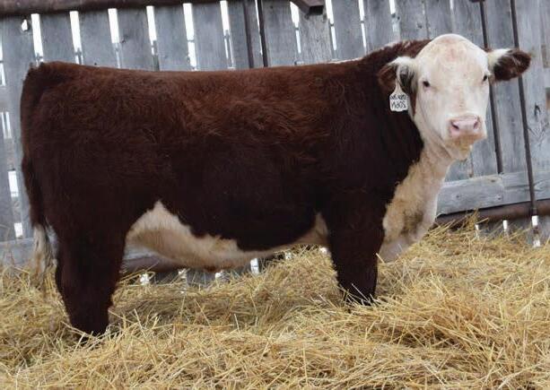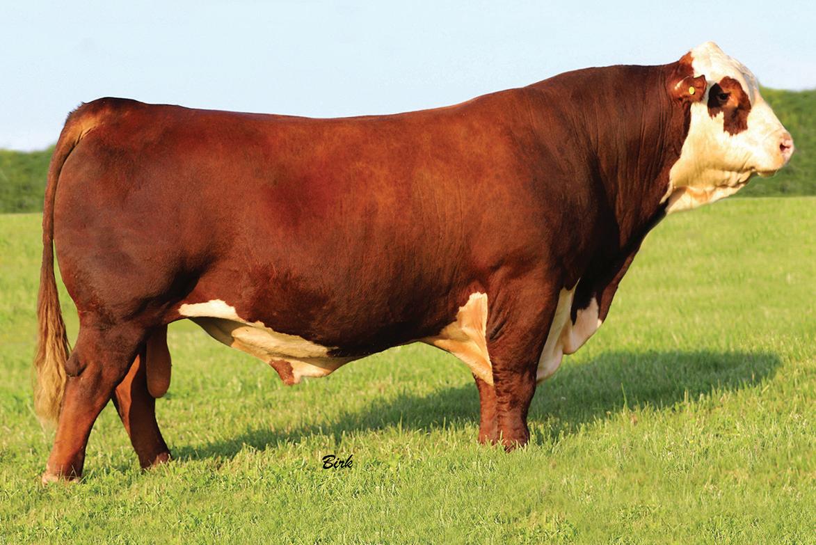 Western x Momentum x Historic equals calving ease through and through 94N’s pedigree. He boasts a plus 17.0 calving ease EPD. They don’t get much better in the Hereford breed. Recommended for heifers Heterozygous Polled.