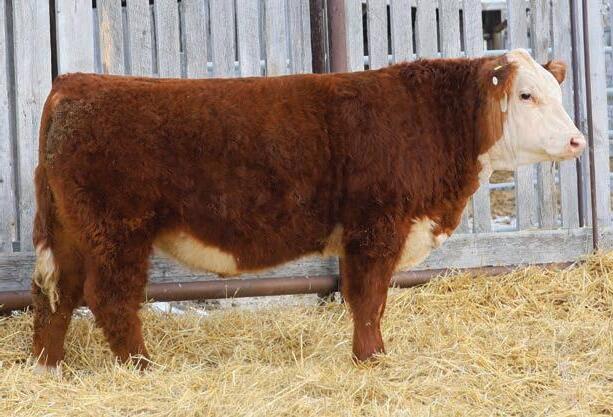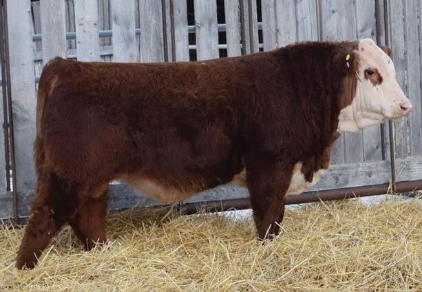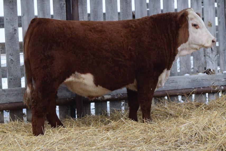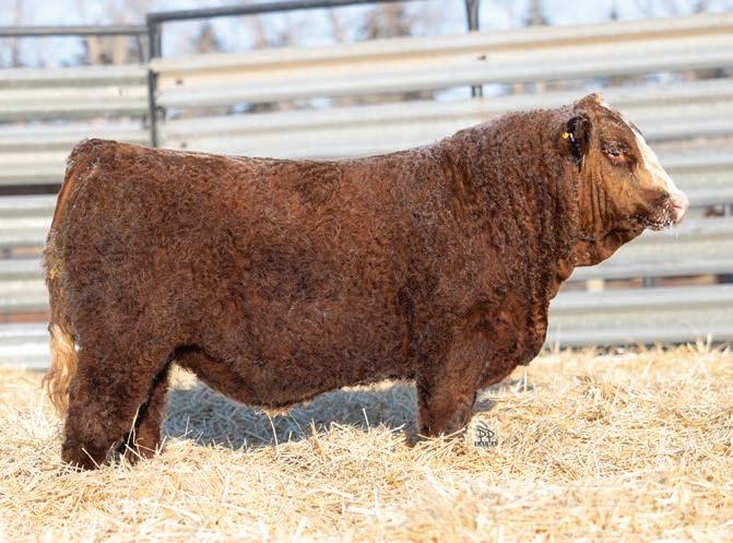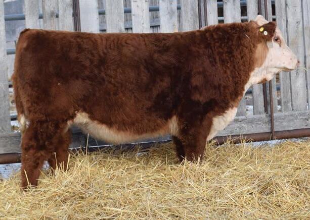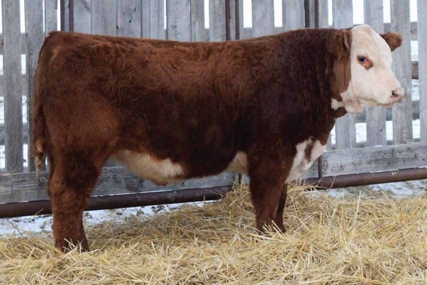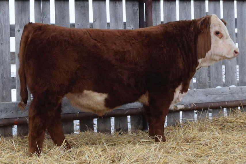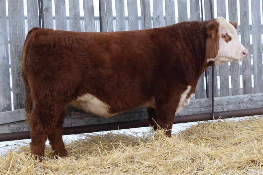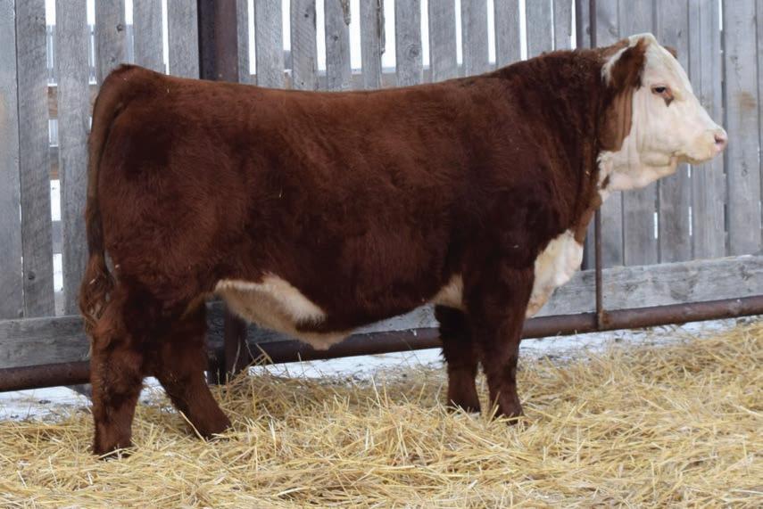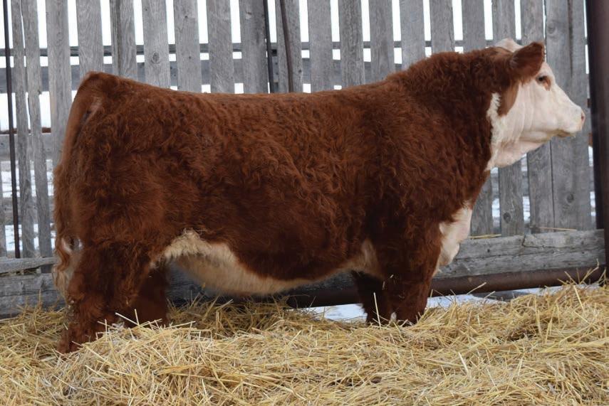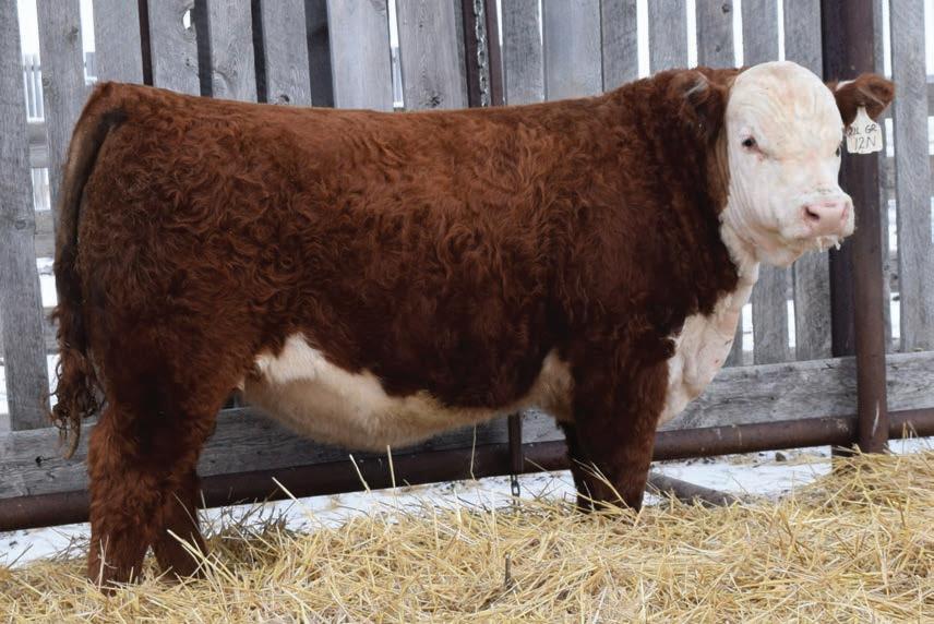 12N is a front end Gold Rush son that has been a favourite all year. This fellow has extra capacity and width of base from one end to the other. He will be able to breed heifers yet still sire replacement females and steers with power that will be the envy of the neighbours.