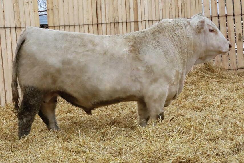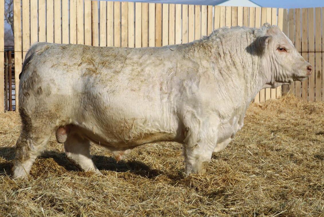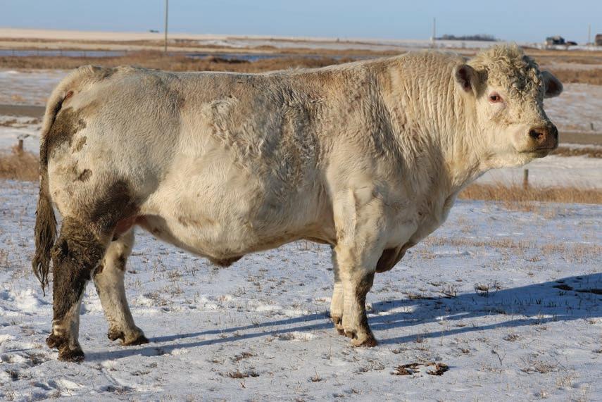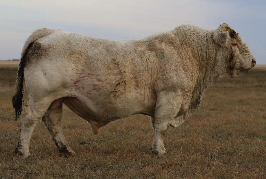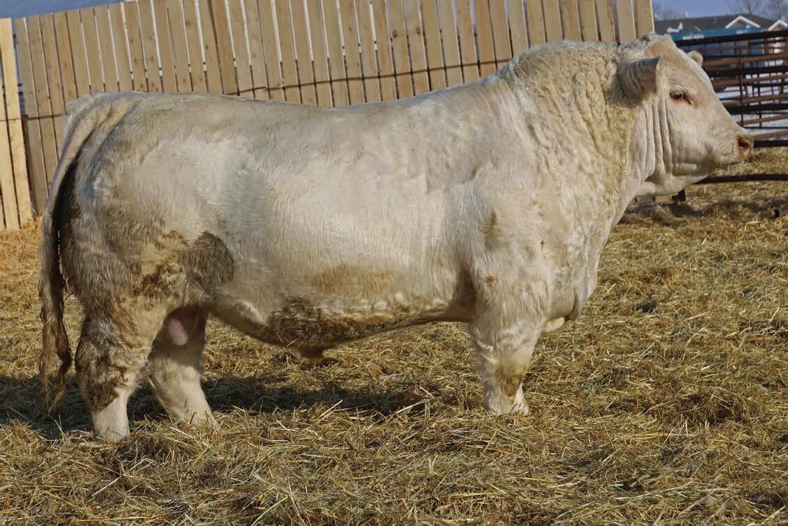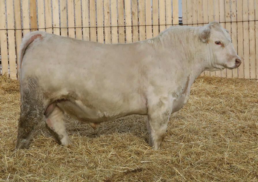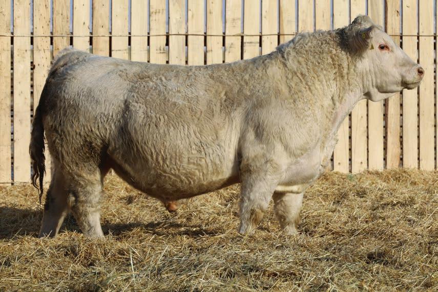 The full brother to Beck’s Throttle 201K, that has made waves for Steppler Farms; Agribition 2024 Champion Charolais Bull, 2024 CN Beef Supreme Top 10, Manitoba Ag Ex Supreme Champion Bull. Most importantly Throttle has gone on to be an excellent breeding bull. Siring the high selling at Steppler’s annual female this past fall at $32000. We believe in this bull a lot and like many attributes about him better than his brother. So much so that he saw use in our own cowherd this past summer. Long spined, strong foot, maternal excellence. The list goes on and on, on this one. Scrotal: 45 cm