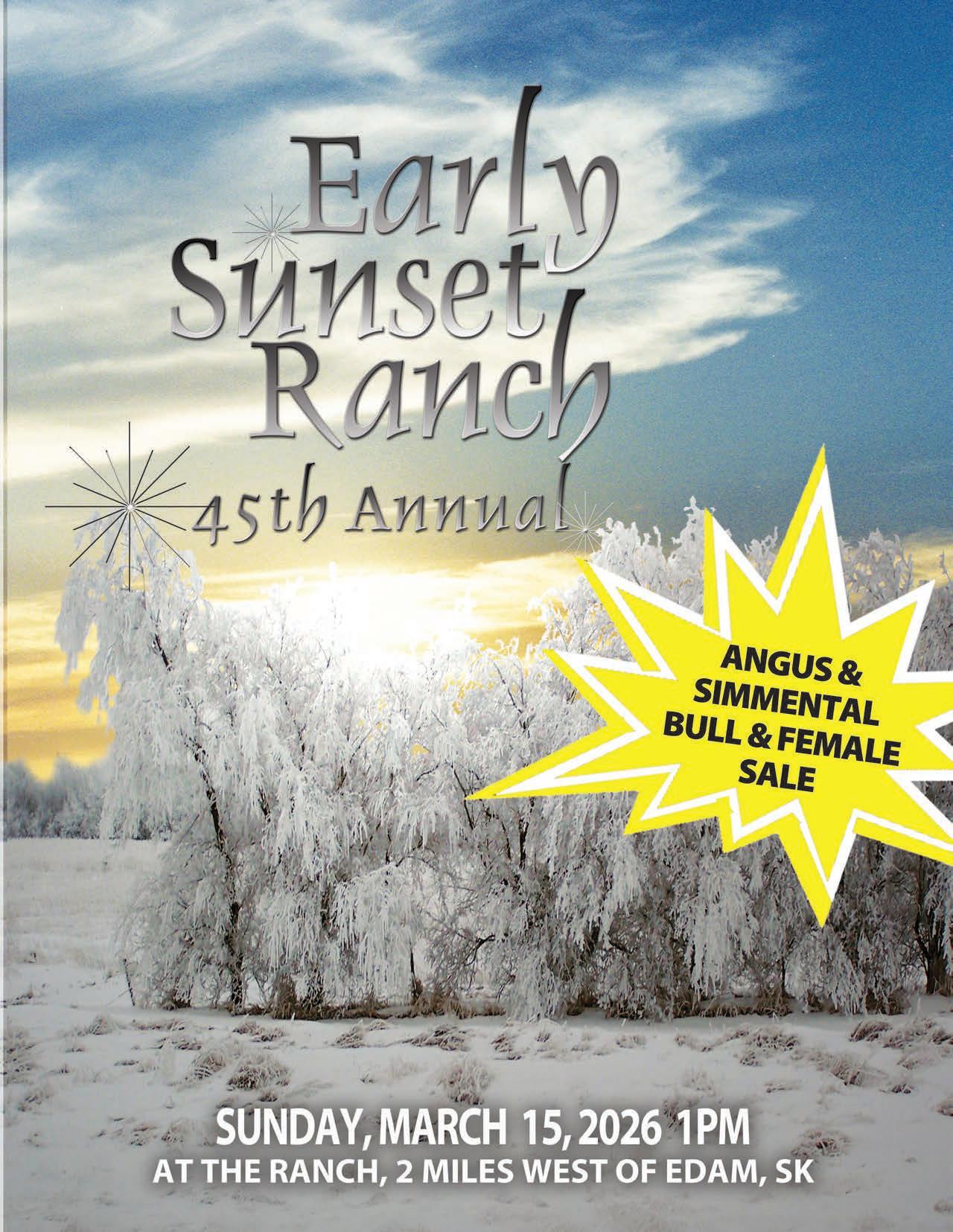 Early Sunset Ranch will keep your bulls until May 2, 2026, at no cost, on the condition that you insure your bulls. After May 2, there will be a $2 per day charge to the purchaser. Insurance will be available sale day and buyers are encouraged to use this option.