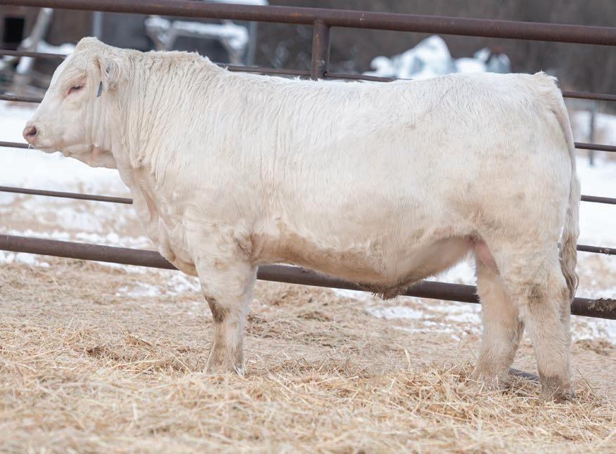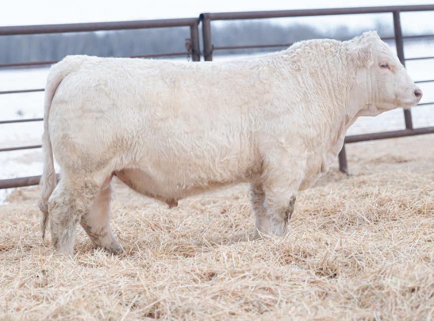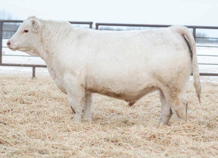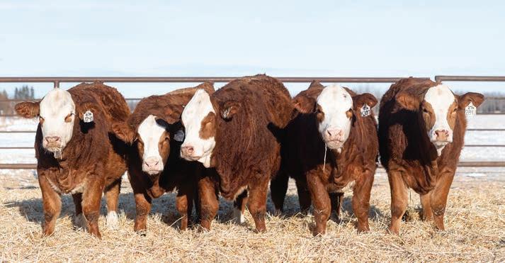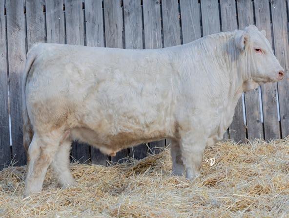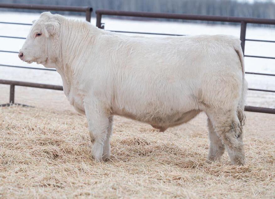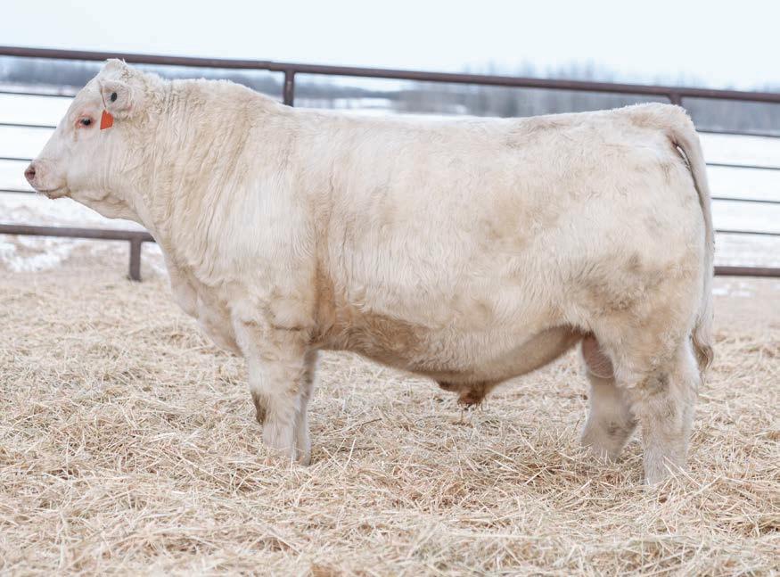 To that end, we want to extend a massive thank you to all of our crew. In particular, a special thank you goes to John and Tammy Dolliver, Jordan Anderson, and Barry and Larissa Peril. As many of you know, my role as a feed sales rep with Country Junction Feeds often takes me away from the ranch. Whether it be the dayto-day operations, or on the show road, their dedication ensures that the daily standards of our operation never waver. We’d also like to thank Tyler, Claire, and the entire Stewart family and 777 Cattle crew. The Springside herd is currently being fed and housed at their place, and the exceptional condition of the offering is a direct result of their care and dedication. We are also thrilled to have KG Land and Cattle consigning again this year. Kale and Grace continue to be a shining example of the next generation of cattle producers, and we are proud to showcase their high-quality white bulls and commercial heifers alongside our own.