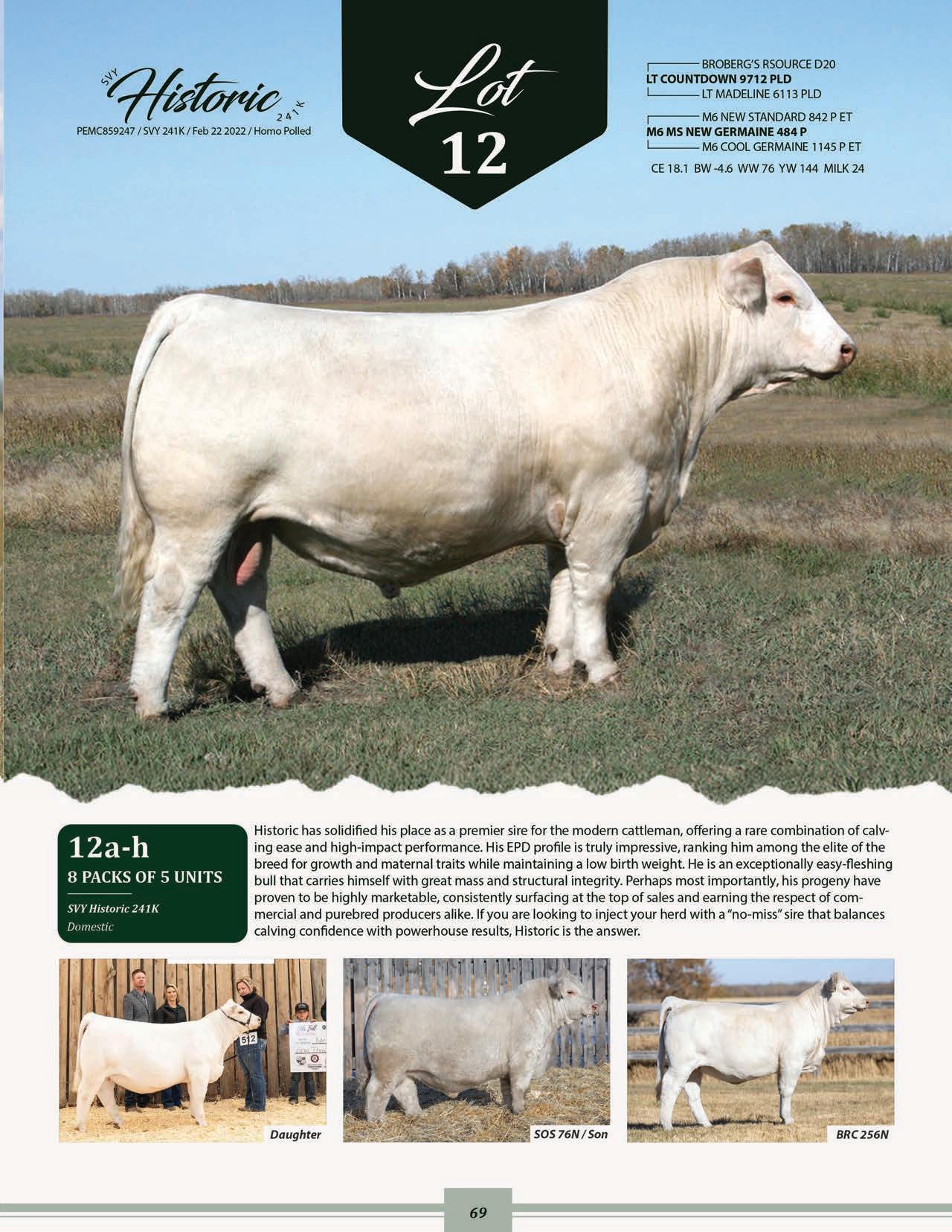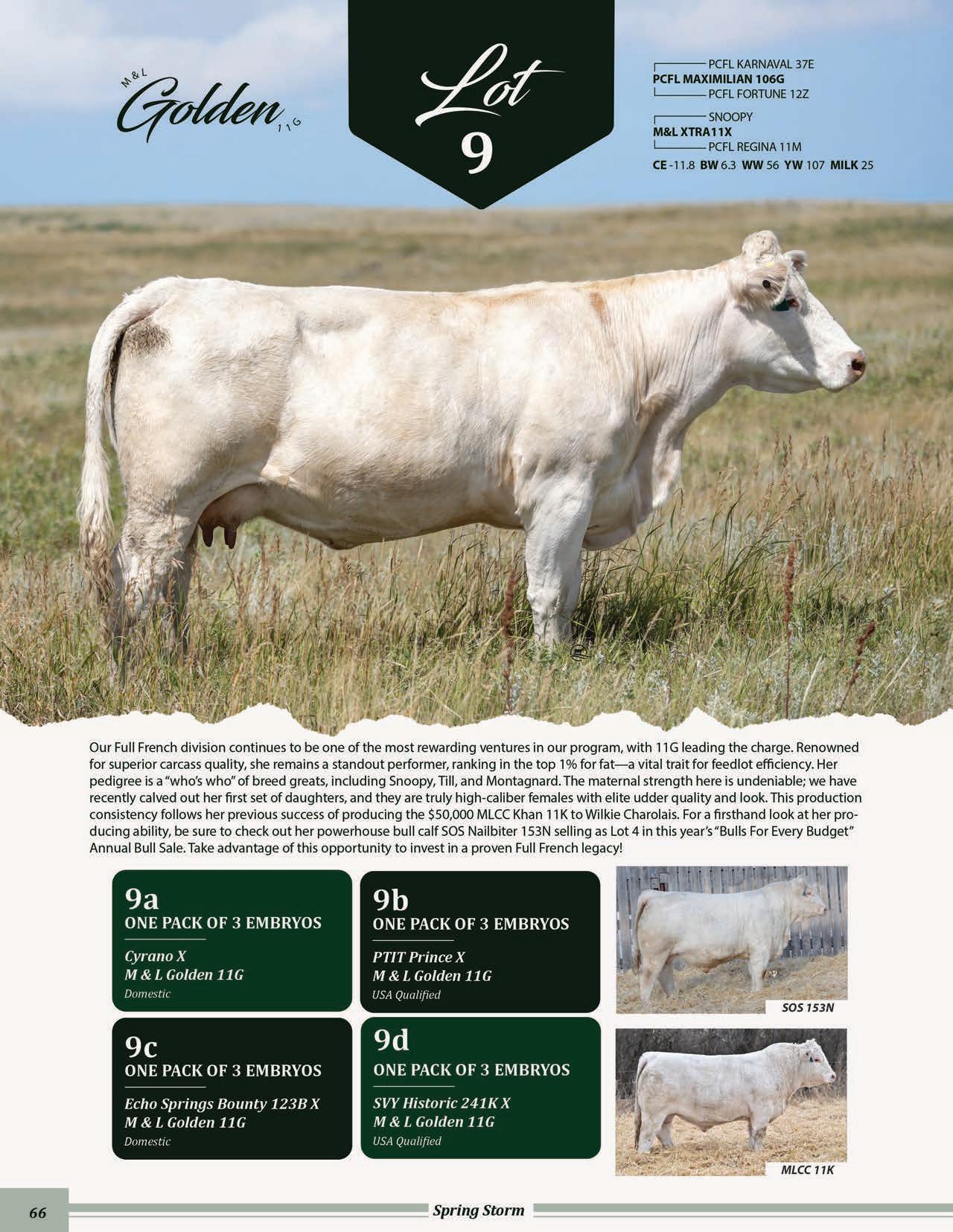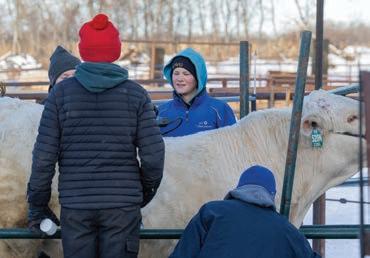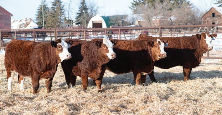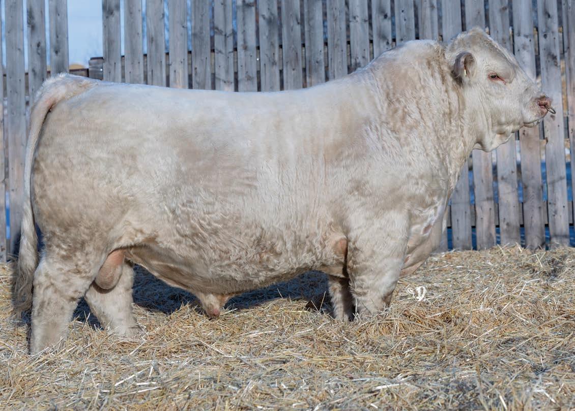 To that end, we want to extend a massive thank you to all of our crew. In particular, a special thank you goes to John and Tammy Dolliver, Jordan Anderson, and Barry and Larissa Peril. As many of you know, my role as a feed sales rep with Country Junction Feeds often takes me away from the ranch. Whether it be the dayto-day operations, or on the show road, their dedication ensures that the daily standards of our operation never waver. We’d also like to thank Tyler, Claire, and the entire Stewart family and 777 Cattle crew. The Springside herd is currently being fed and housed at their place, and the exceptional condition of the offering is a direct result of their care and dedication. We are also thrilled to have KG Land and Cattle consigning again this year. Kale and Grace continue to be a shining example of the next generation of cattle producers, and we are proud to showcase their high-quality white bulls and commercial heifers alongside our own.