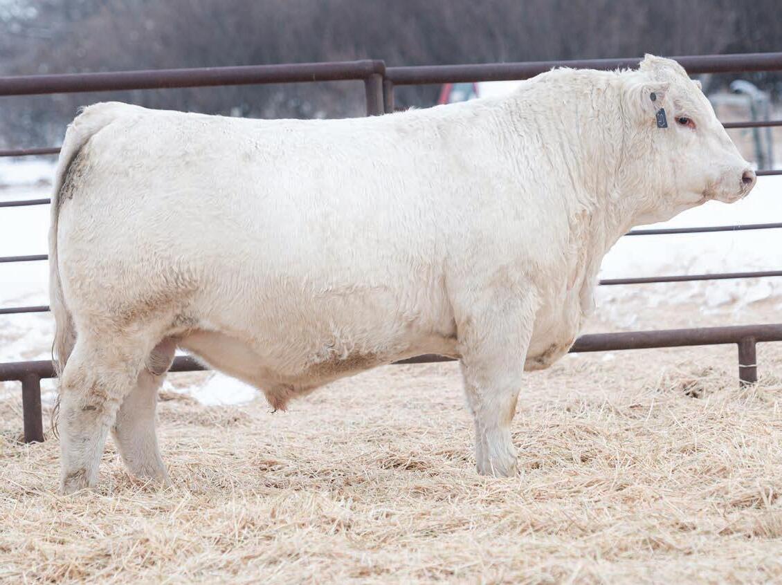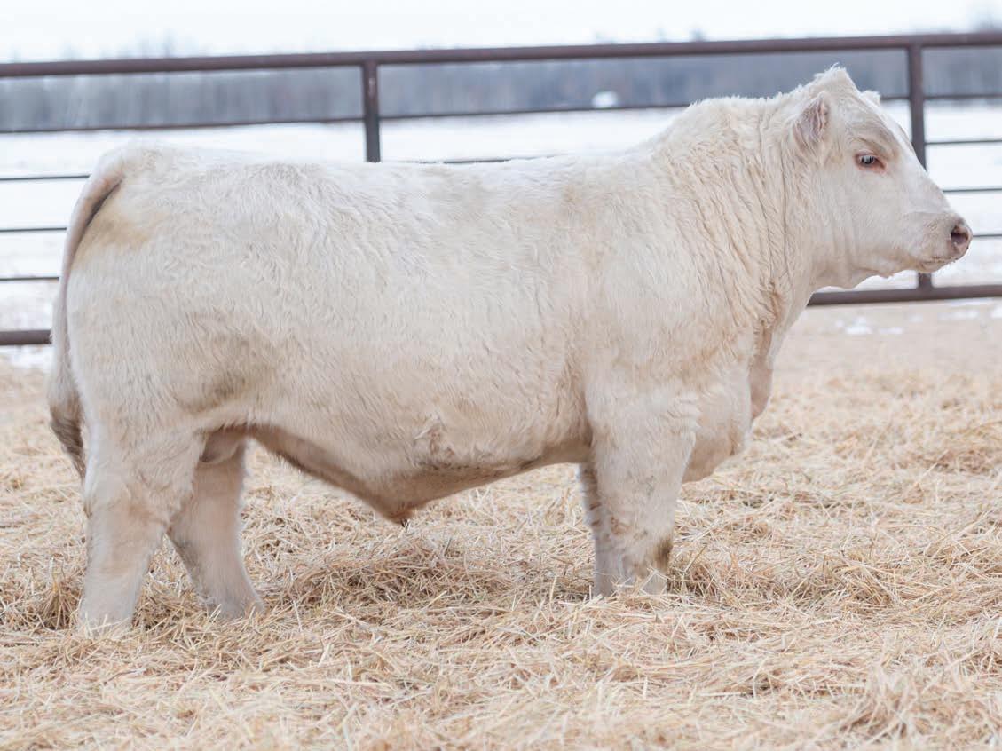 Our only White Bear in the offering, out of a very nice first-calver that did a whale of a job—this calf weaned off at over 800 lbs. He fits well on second-calvers or young cows if you want easy calving without sacrificing weaning weight.