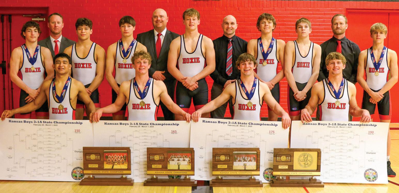 SMITH CENTER returns a loaded roster after placing 10th at state. Leading the team is sophomore Keleigh Ochoa (105), who captured a 2025 state championship following a 37-6 season. Other returning qualifiers include sophomore Ella Clark (125) and sophomore Karper Franklin (145), along with junior Kacee Herredsberg (190), a twotime state qualifier and sixth-place finisher in ‘25.