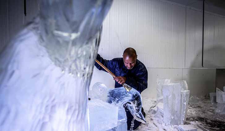 Im Laufe des Jahres gibt es immer wieder wechselnde Ausstellungen. Dann kommen die Künstler und Künstlerinnen, um mit ihren Meißeln, Motorsägen und Gasbrennern neue Skulpturen zu schaffen. Aus den Eisblöcken zaubern sie beeindruckende Kunstwerke mit enormer Detailgenauigkeit. Eine ganz spezielle Beleuchtung erzeugt dann die märchenhafte Stimmung. Die Temperatur