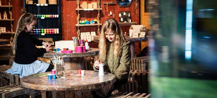 i at binde hele oplevelsen sammen og har indrettet en hyggelig butik og caféhjørne, hvor der er plads til brætspil og snak – og mulighed for at købe brugskunst i glas med hjem – eller lidt julepynt (for is og jul hører bare sammen).