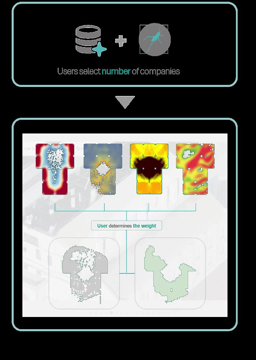 Users can search for favoured areas on the map interface anddirectly compare factory locations and rental costs. In addition,they can filter the search results based on preferences such asfactory size, rental costs or nearby amenities.