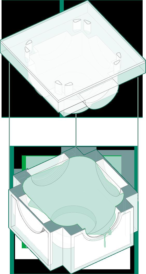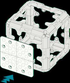 The Cubeix system employs a dry-assembly method that enables rapid, reversible construction. Each unit incorporates an interlocking mechanism, with one side slightly protruding and the other recessed. When inserted and rotated 90°, the modules lock together without the need for tools or adhesives.