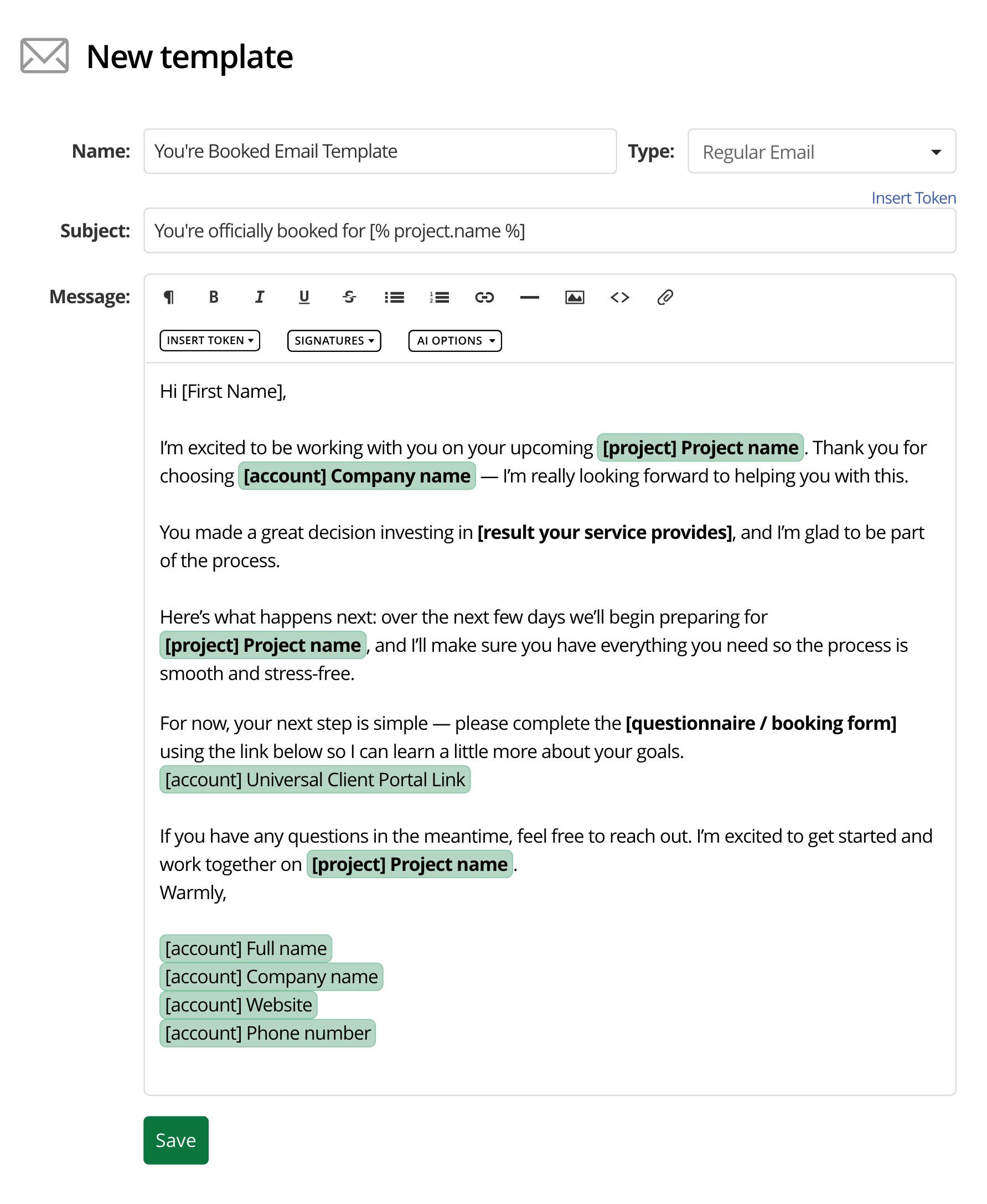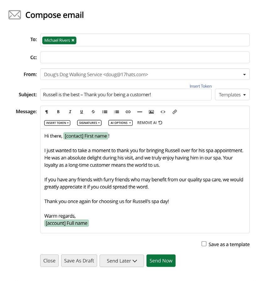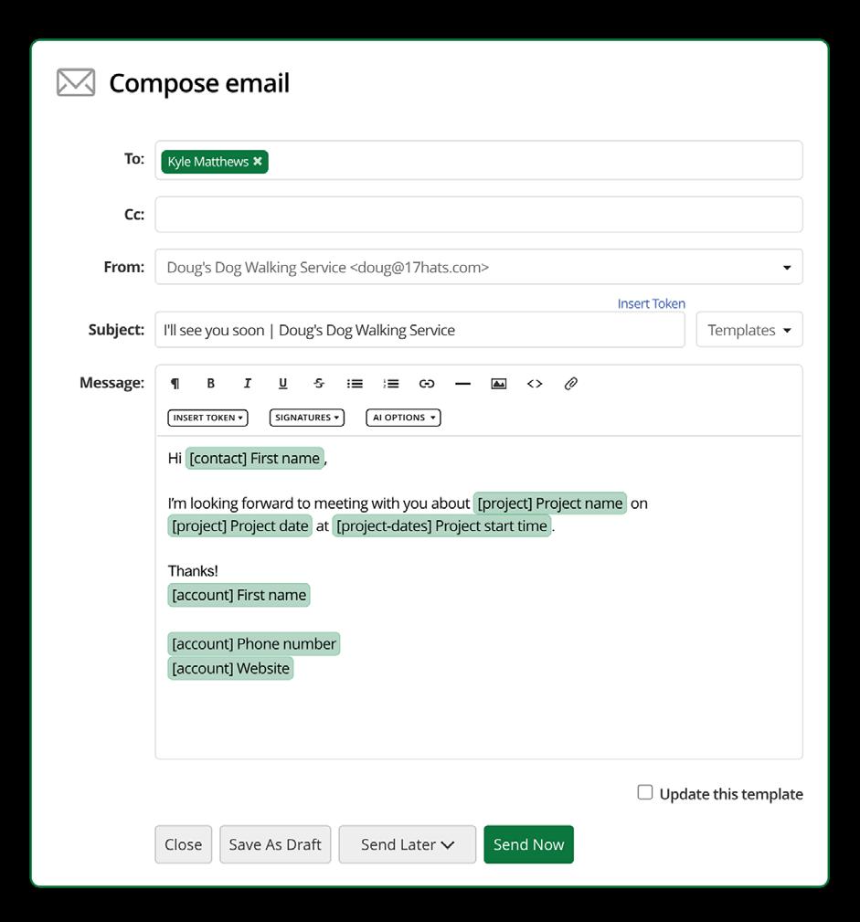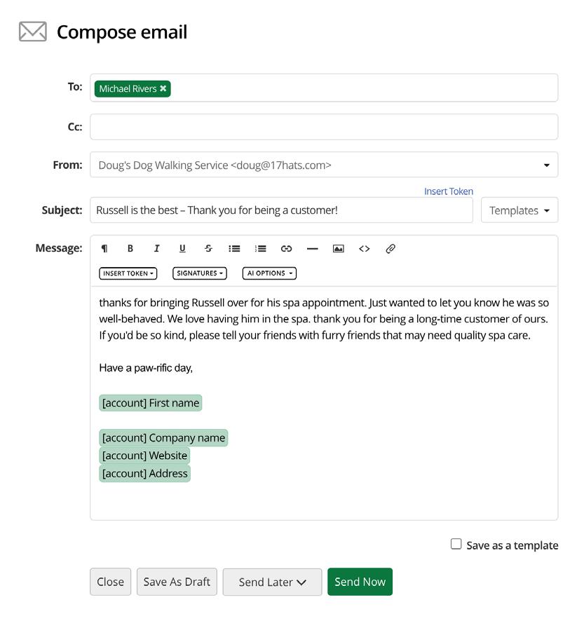 Combining the automatic personalization with Tokens and your brand voice, you have a winning combination that your clients will appreciate.