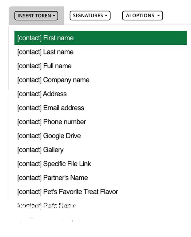 Simple tokens, such as First Name, adds a personal touch; but you can take it to the next level by creating Custom Fields. Reuse data such as pet’s name, spouse’s name, and kid’s names via Custom Field Tokens for an elevated sound.