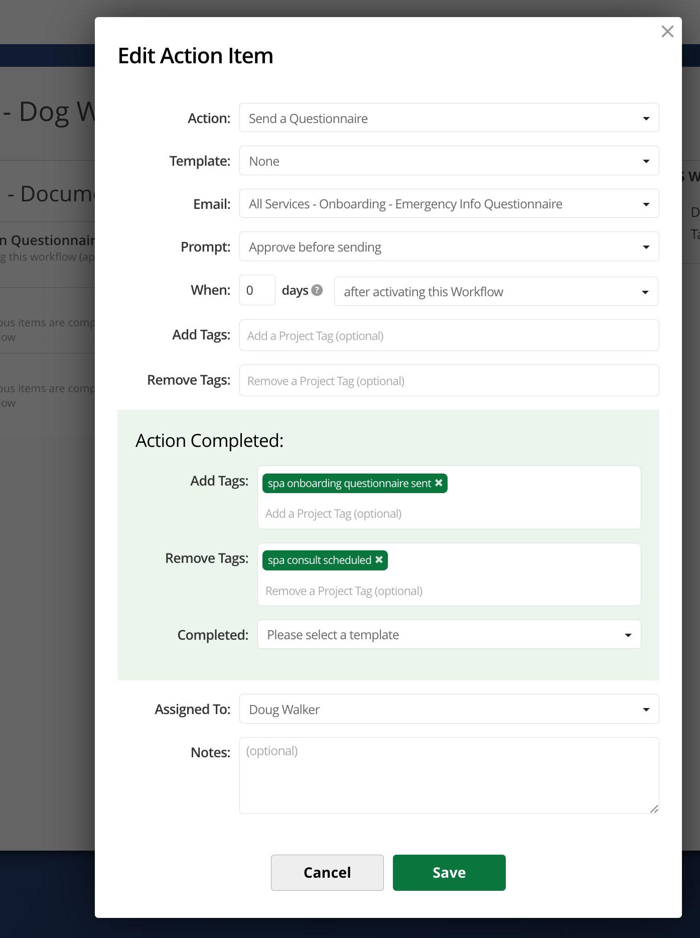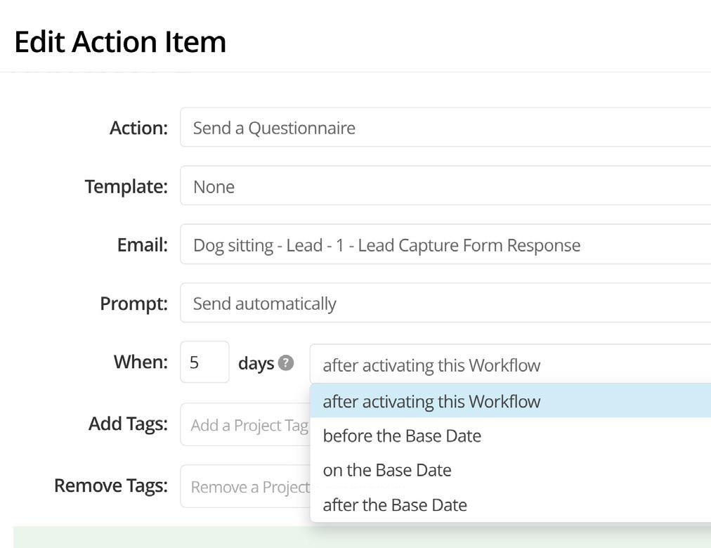 Let’s say you send a Questionnaire as part of your process, and in your Questionnaire you have a ‘Choose From A List’ Question type. Each answer selection can apply a Project Tag, which means each of those answers could now trigger a designated Workflow.