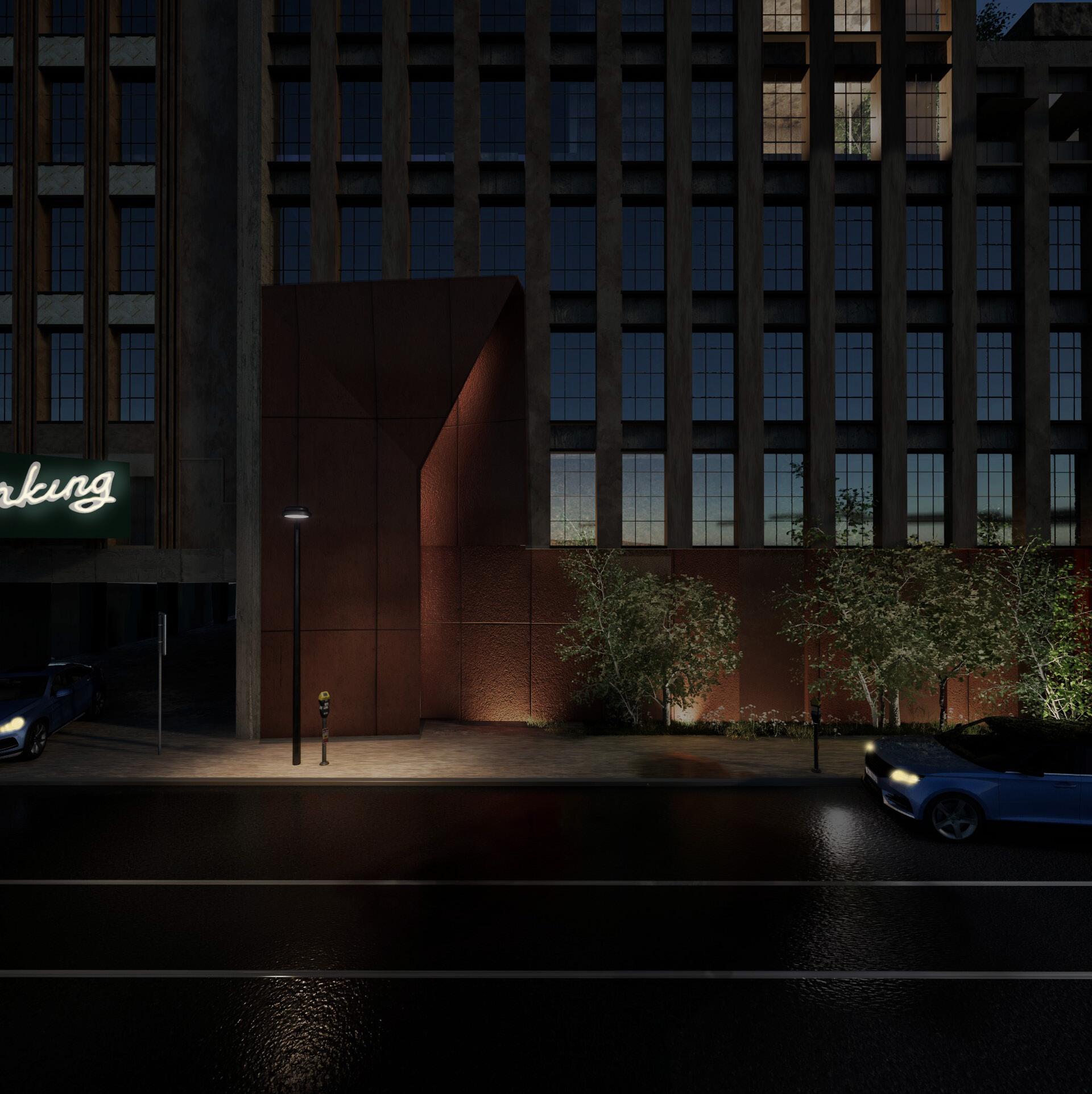 Psychedelic-assisted therapy has demonstrated significant potential in treating a wide range of conditions, including addiction, depression, and PTSD. This project explored how architectural space can actively support the healing process. The site is a vacant parking garage in downtown Denver, and a central design challenge was transforming a dark, cold structure into an environment capable of supporting individuals in a highly vulnerable state.
