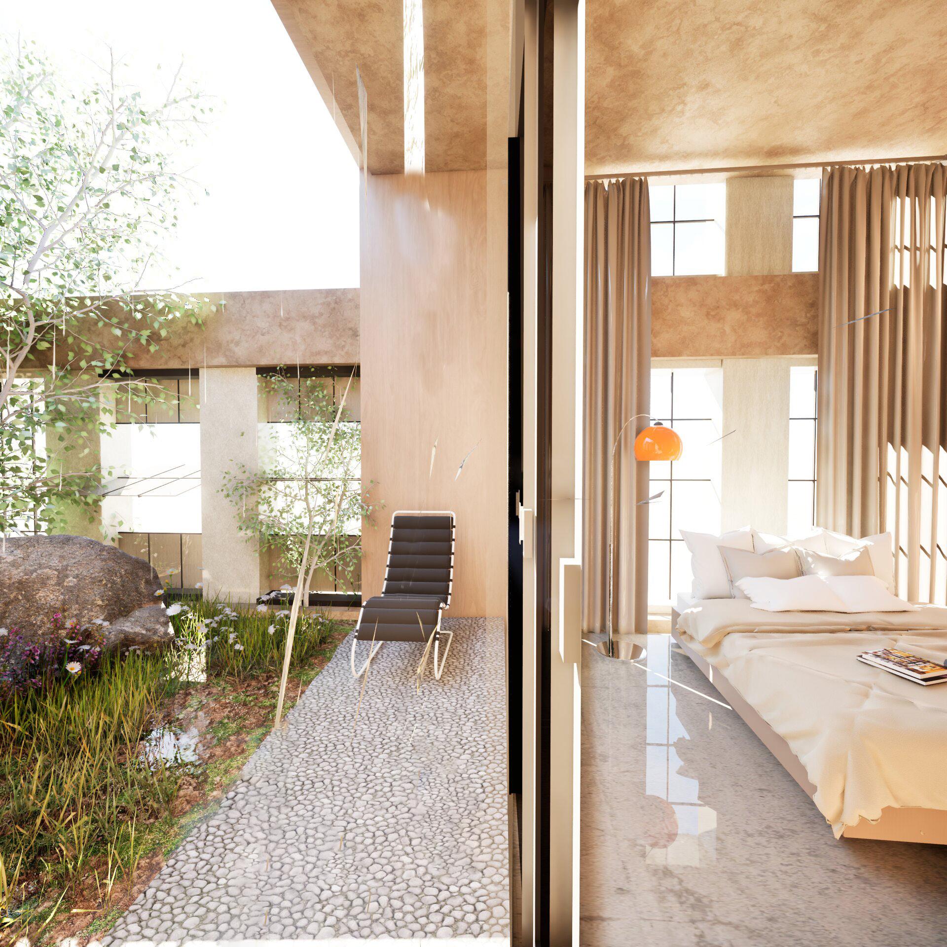Because visitors may occupy the space for extended periods of time, the program was designed to sustain both physical and emotional well-being. Research has shown that natural elements can produce positive effects within psychedelic therapy. In response, the design integrates ecology, daylight, and natural materials as active components of the therapeutic environment, allowing architecture to function as a supportive and restorative presence throughout the session.