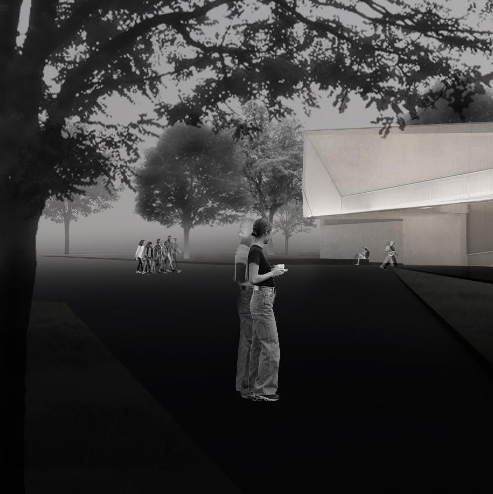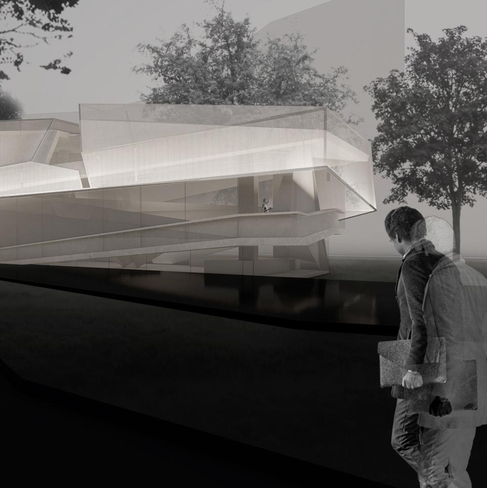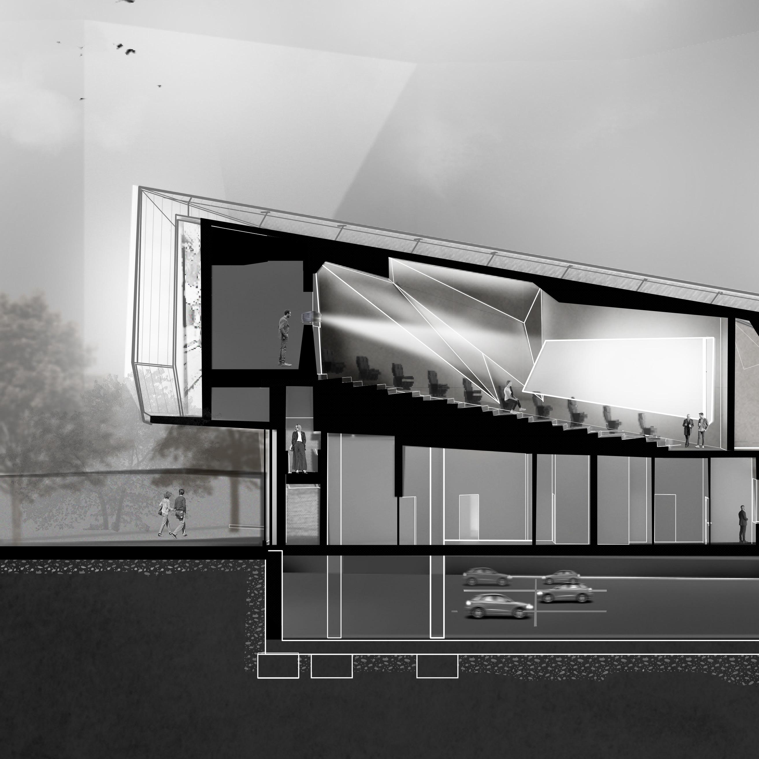 With the directive to disregard material, the design focused on how form alone, through transparency, opacity, and void, can guide experience and visual connection. The cinema is conceived as a unified form, where no single part dominates, and each space contributes to the whole.