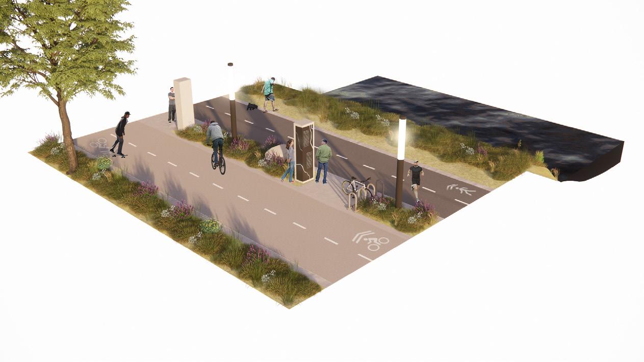 Through my role at HDR, I contributed to a study transforming the Papio and Elmwood Creek areas in Omaha, Nebraska, which currently lacks spaces focused on ecology and pedestrian needs. My role involved leading design and creating graphics given to Omaha community members to enhance pedestrian safety, accessibility, and ecological health, integrating elements like wetland ecosystems and native ecology, educational way finding, and comfortable pedestrian environments.