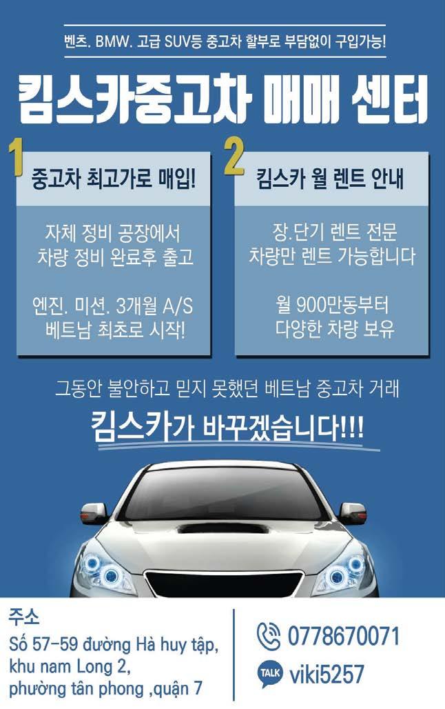 그동안 불안하고 믿지 못했던 베트남 중고차 거래 킴스카가 바꾸겠습니다!!!