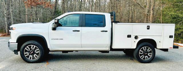 2024 CHEVROLET 2500 HD CREW CAB 8’ UTILITY 4X4. w/Magnum Headache Rack. 6.6L V8 Gas, PW, PL, AC, 6-Passenger, Back-Up Camera, Bluetooth, Nav, Alloys, Privacy Glass, 38,000 Miles, One Owner, Factory Warranty, Pristine, $51,900. (Others Avail.)