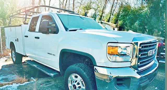 2015 GMC 2500 DOUBLE CAB 4X4 8’ UTILITY. 6L V8, Auto, AC, PW, PL, Alloys, 6-Passenger, Rhino Liner, 102K, One Owner, Fleet Maintained, Very Well Kept, $29,900.