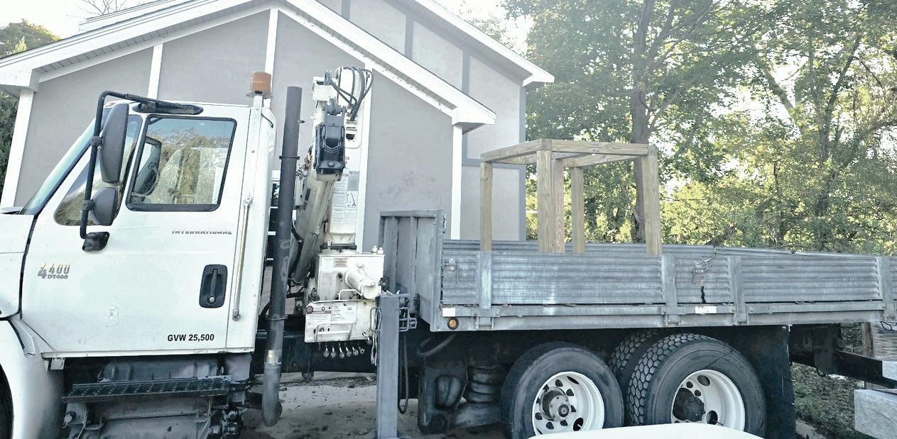 2001 IH MATERIAL HANDLER. Haib Crane, Low Miles, CAT Power, 18 Speed, 20 Frt, 46 Rears, Plus Lift Axle, Needs TLC, $16,500 OGO