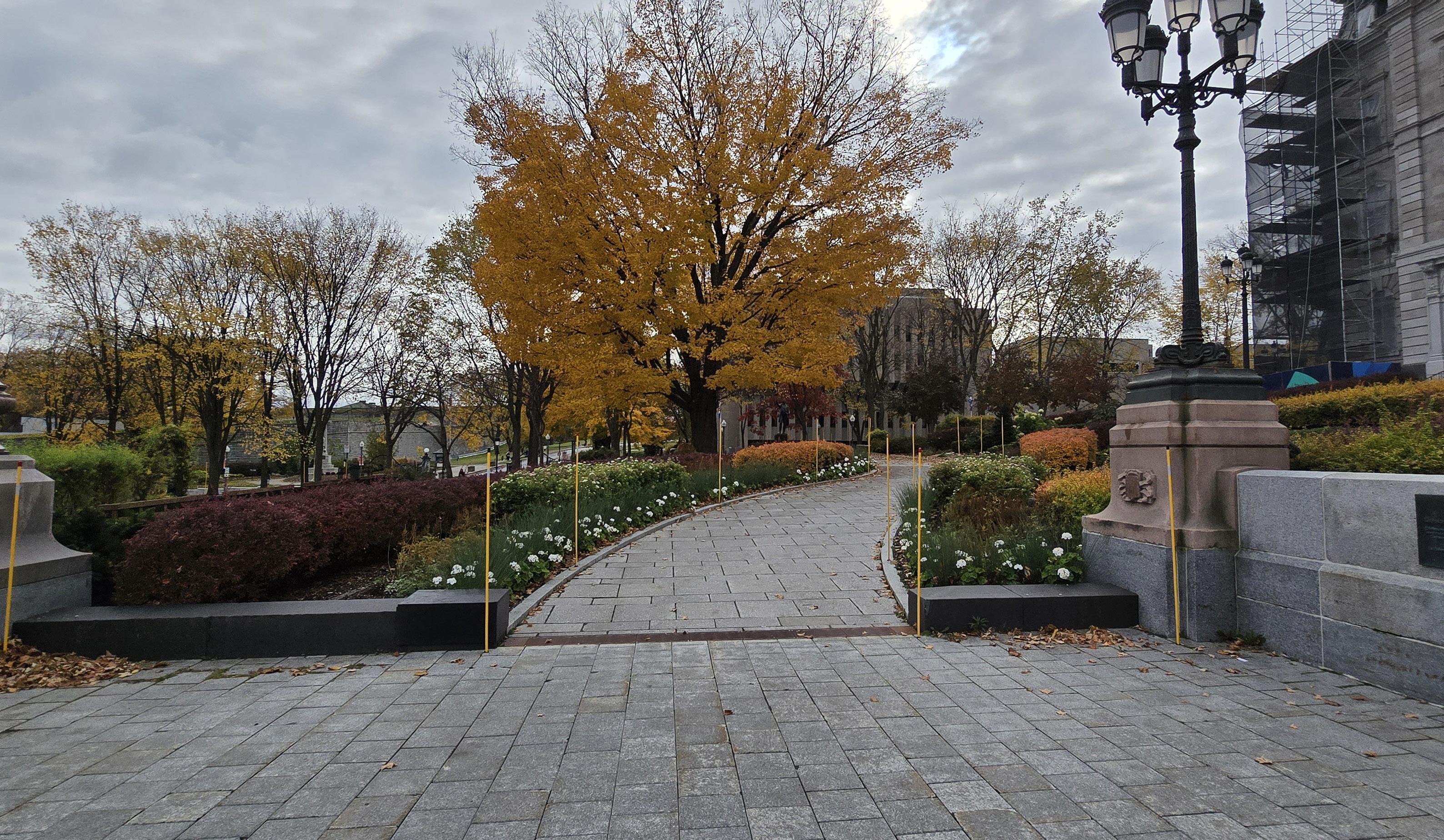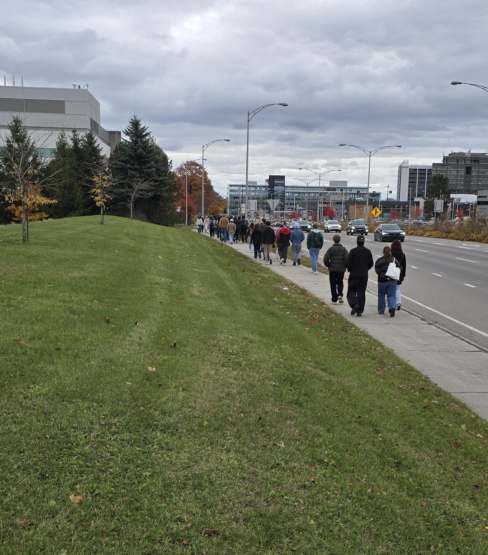 Back outside, once again passersby are seen towards each s destinations One could imagine how full this walkway could be on a typical day. Additionally, this photo nods again to the foliage surrounding the institution, where the trees provide a natural frame for the image