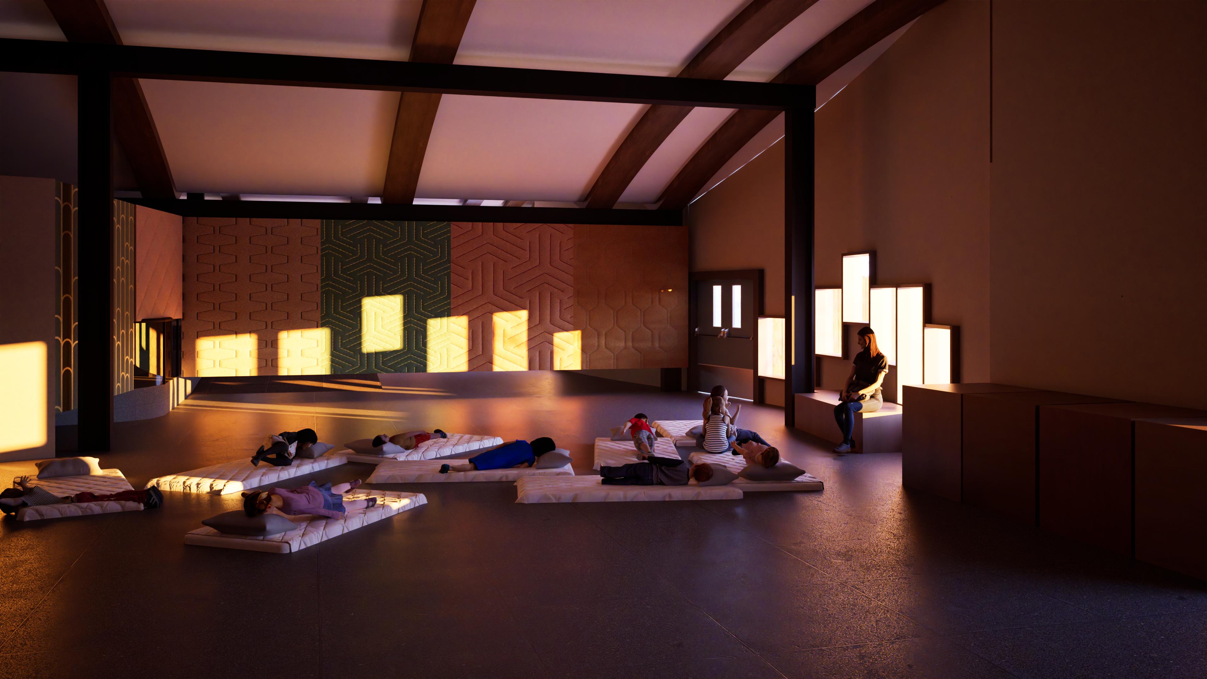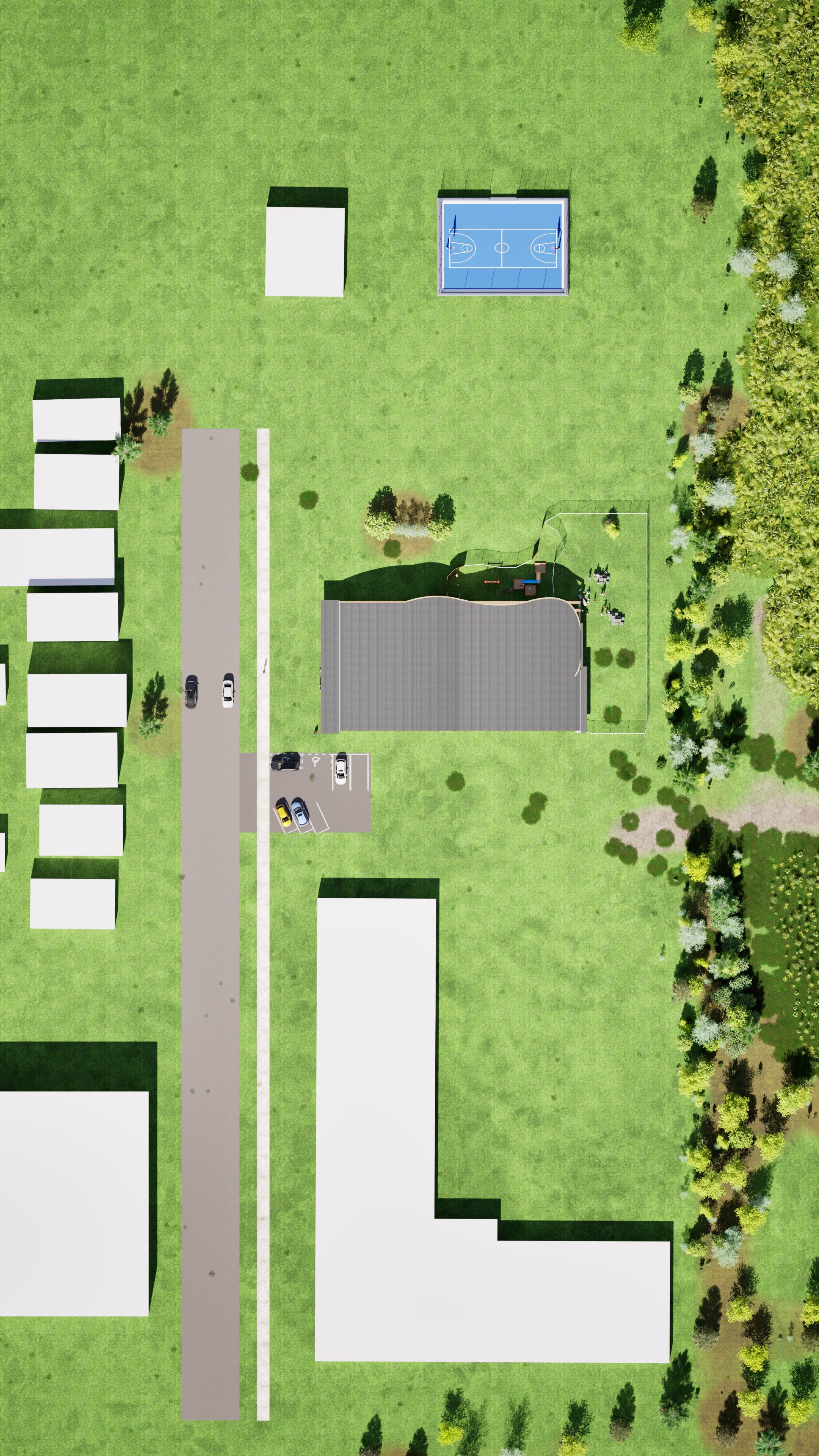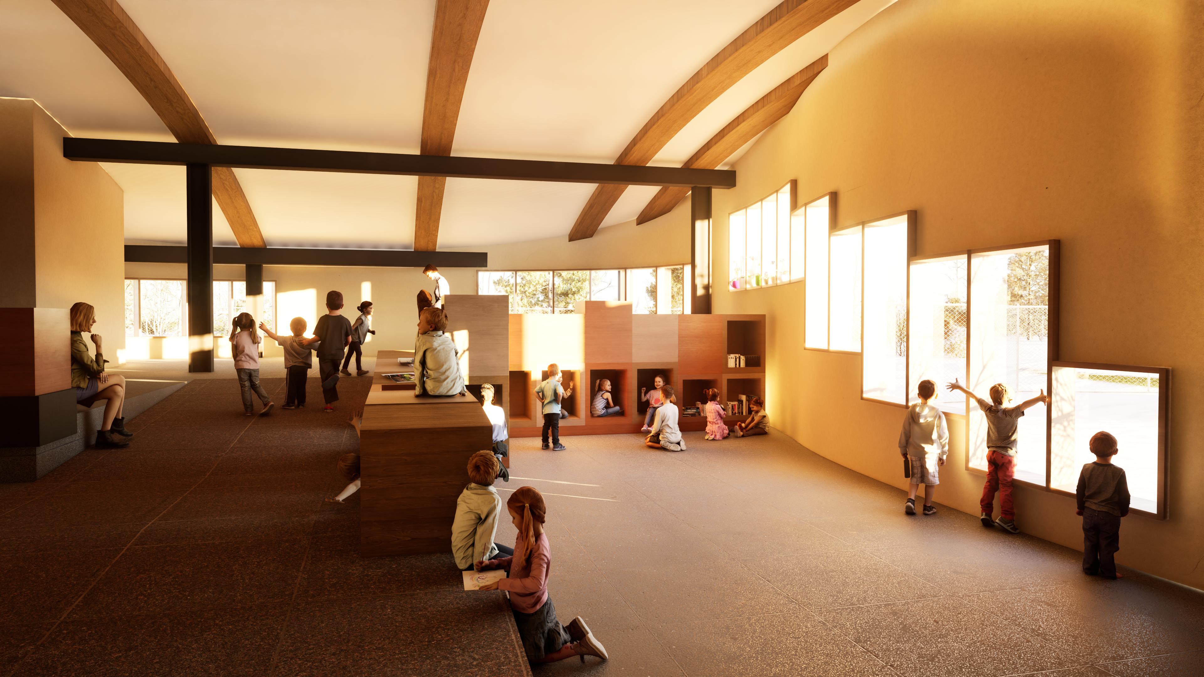 This play and education centre was developed as part of a studio project for a daycare/school, requiring a full architectural proposal from concept and site planning to classroom design, sections, perspectives, and introduction to Ontario building code integration. The brief placed particular emphasis on habitation, outdoor play, safety, indoor-outdoor relationships, and the design of spaces that support childhood development through both everyday use and imaginative exploration.