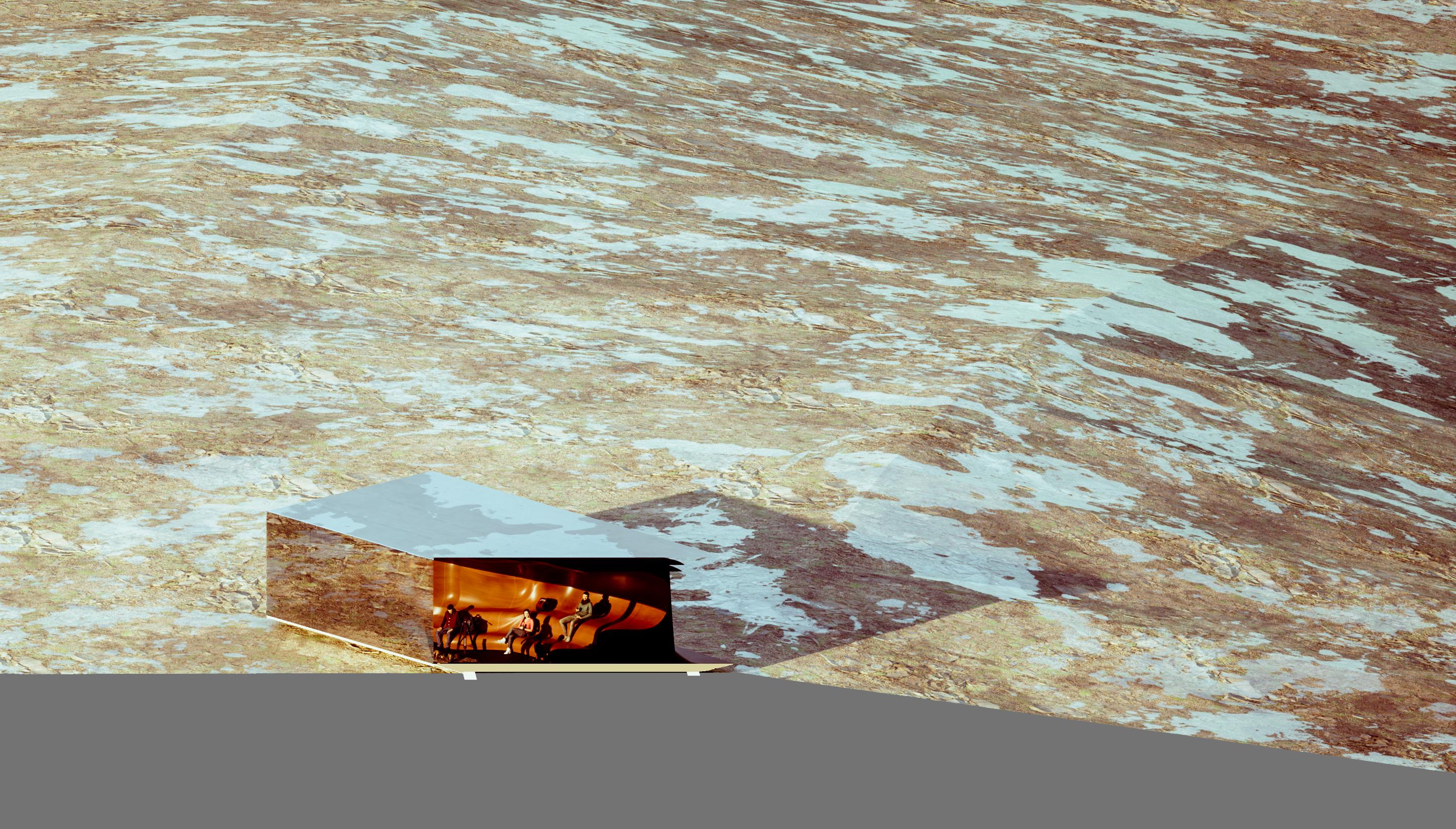In response, the project frames the sauna as a therapeutic refuge embedded within the Northern environment. Positioned on exposed rock near the shoreline, the building uses local timber, stone, and large panoramic openings to connect interior warmth with the surrounding landscape. The approach to the building is conceived as part of the experience itself: a gradual journey through the site that prepares visitors for the transition from cold exterior to warm interior, and from movement to pause. Rather than functioning as a singular enclosed object, the project combines ritual, gathering, and landscape into a small communal destination. In this way, the sauna connects place, wellness, and social life, demonstrating how architecture in the North can foster reflection, resilience, and a deeper engagement with climate and community.