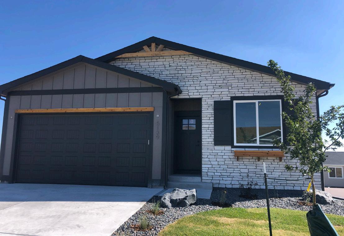 The city views from the ridgeline in Saddle Ridge are simply stunning! The elegant Bighorn II floor plan by Gateway Construction showcases more than 3,500 square feet and lives like a dream with its wonderful open layout, gourmet kitchen with quartz countertops and huge walk-in pantry. Steal away to the master suite featuring a walk-in closet, quartz counters and oversized master shower with a bench. Five bedrooms and three bathrooms provide room for every member of the family to stretch out, and a roomy threecar garage offers space for all the toys. Looking for extra room to host parties? You’ll find it in the huge finished basement including a custom wet bar. A beautiful covered patio and deck opens onto a large (1/3-acre) lot. Be the first to call this spectacular place home!