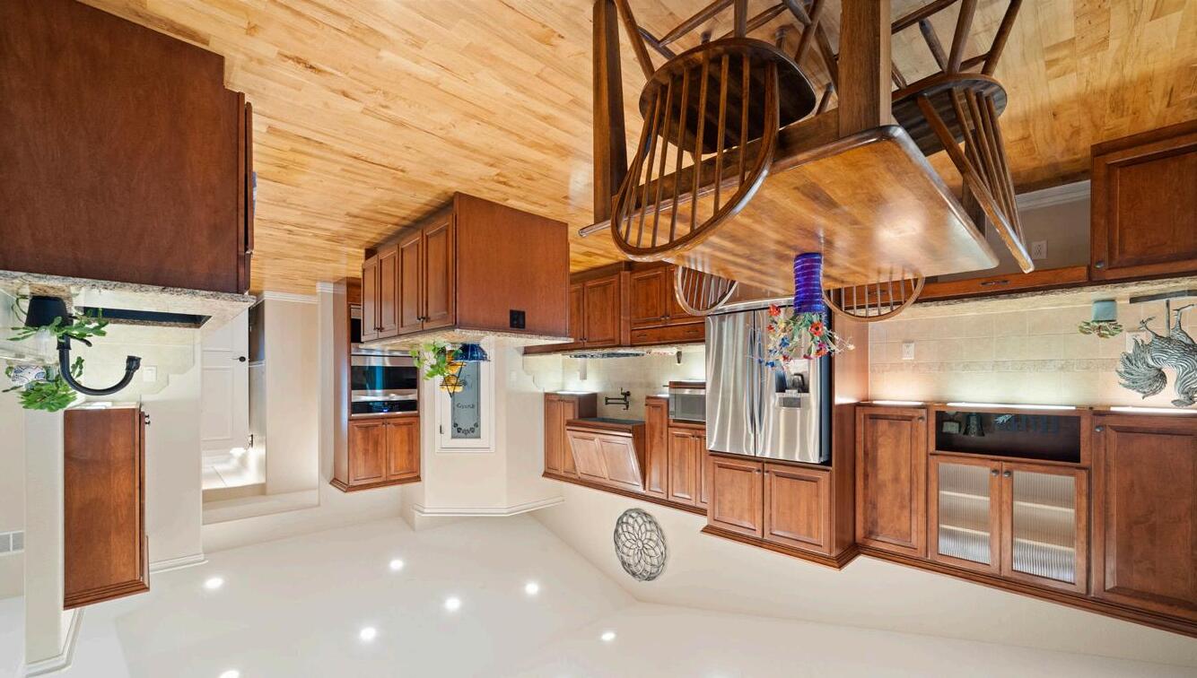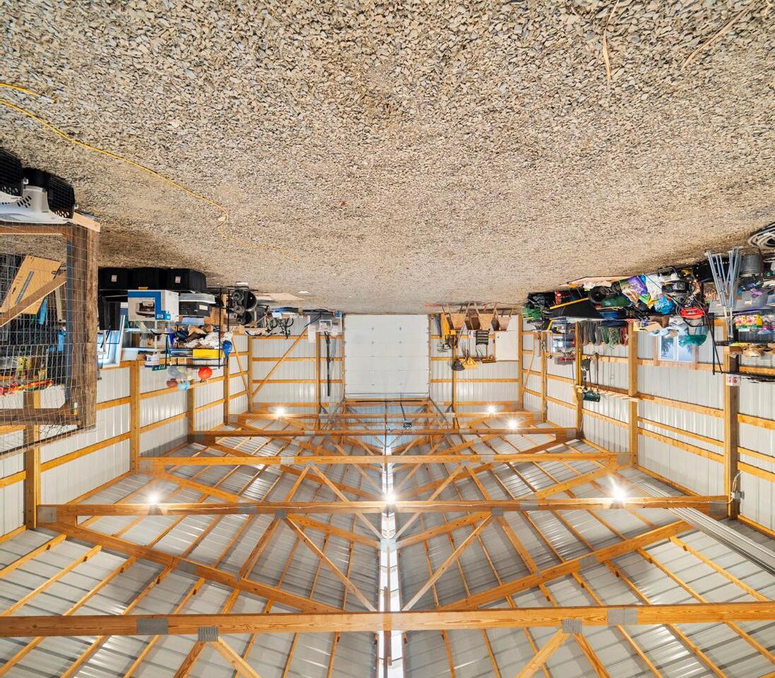 The fully insulated, finished 3-car garage meets modern needs, while the expansive fenced acreage supports animals, with over 400 mature trees on drip irrigation ensuring privacy and tranquility.