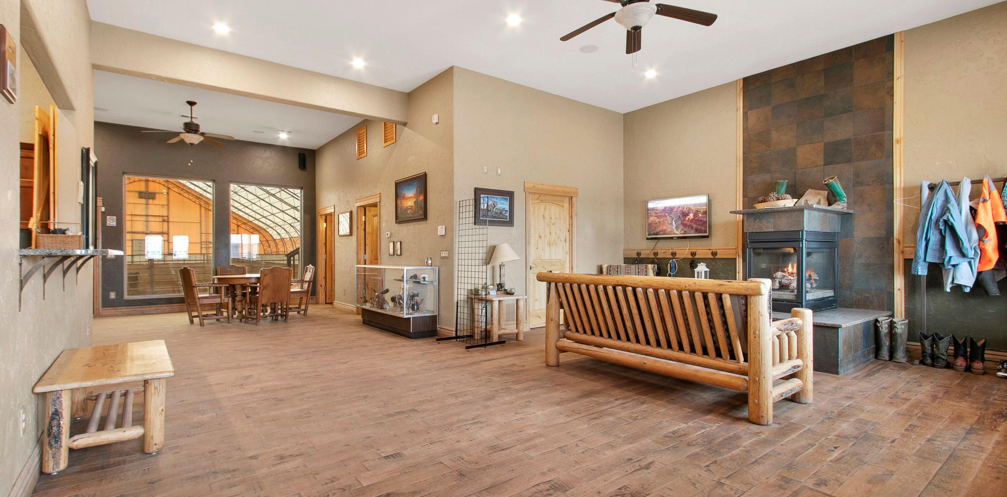 Incredible opportunity to own this huge Coverall barn 320x130 with commercial kitchen, twolevel club house two viewing levels, and twelve loafing sheds with 24 separate runs, fourteen-box stall barn, original barn, four stalls with runs, private tack room, boarder tack room, working cattle pens with additional loafing sheds for livestock, outside arena, two round pens, and so much more! Need a home with this? Check out additional listing for 3717 Riata Loop, Cheyenne WY –can be purchased together!