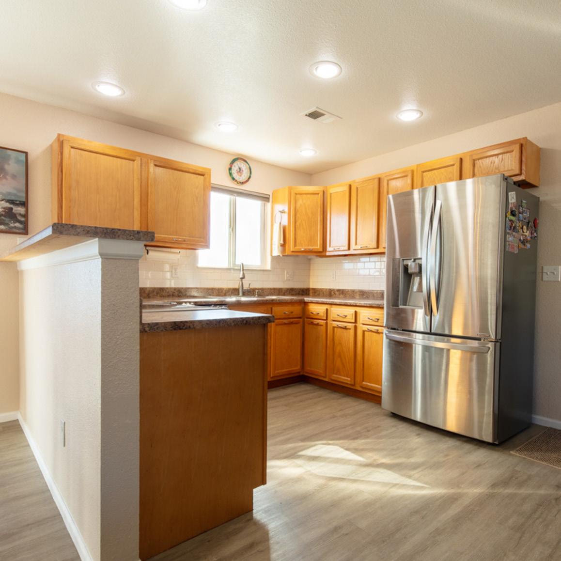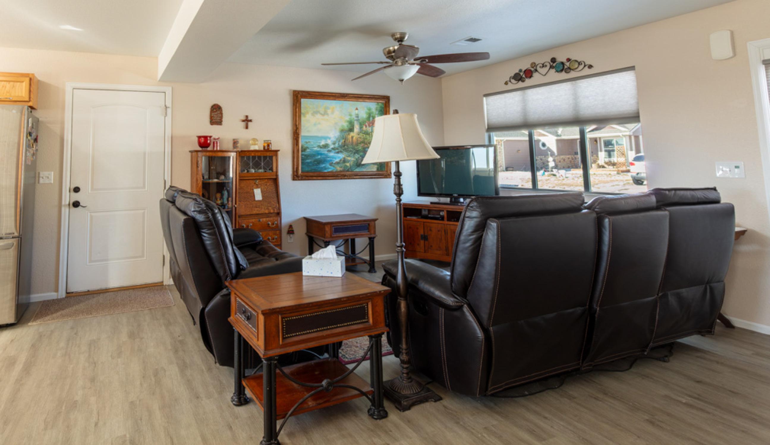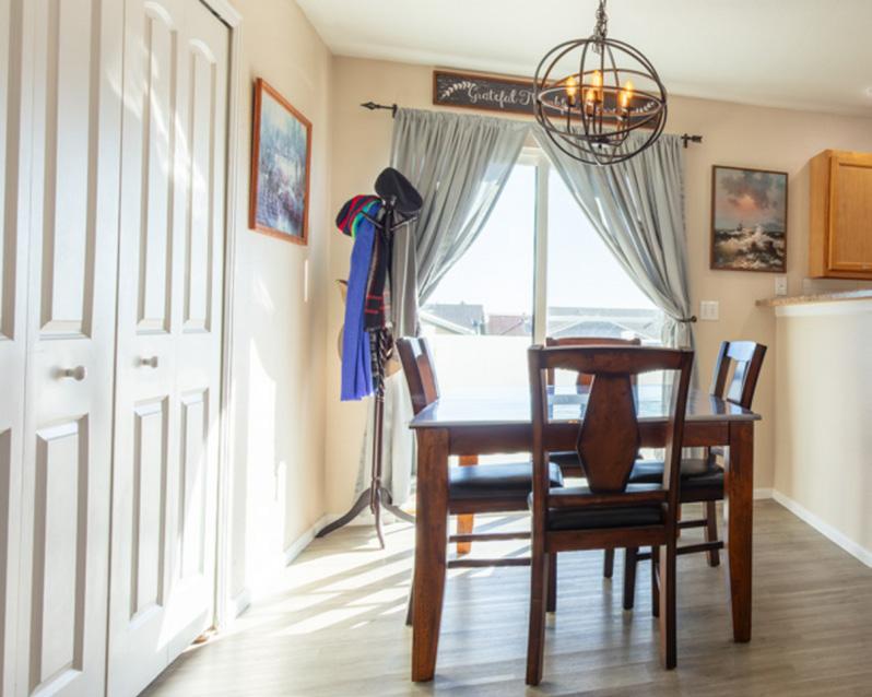 Bright, cheery, and full of natural light, this wellmaintained single-family home offers comfortable living on just one level. The home features three bedrooms, two bathrooms, and an attached two-car garage. Inside, the open concept living room, dining area, and kitchen create a sunny, welcoming space ideal for both everyday living and entertaining.