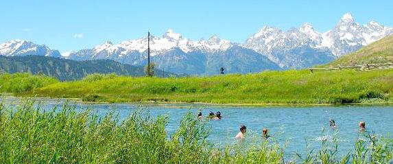The view of the Tetons at Kelly Warm Springs, just outside of Kelly, WY., is amazing! The water is warm and the spring is actually deep enough to swim in. Numerous springs bubble at the edge of the banks keeping the water a constant 81º- perfect for a swim.