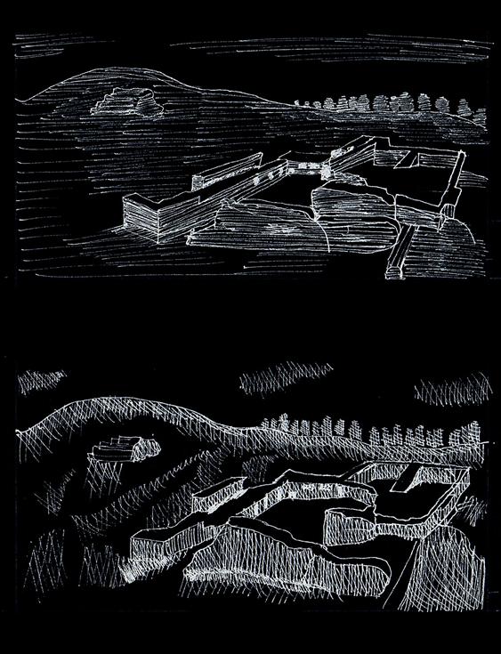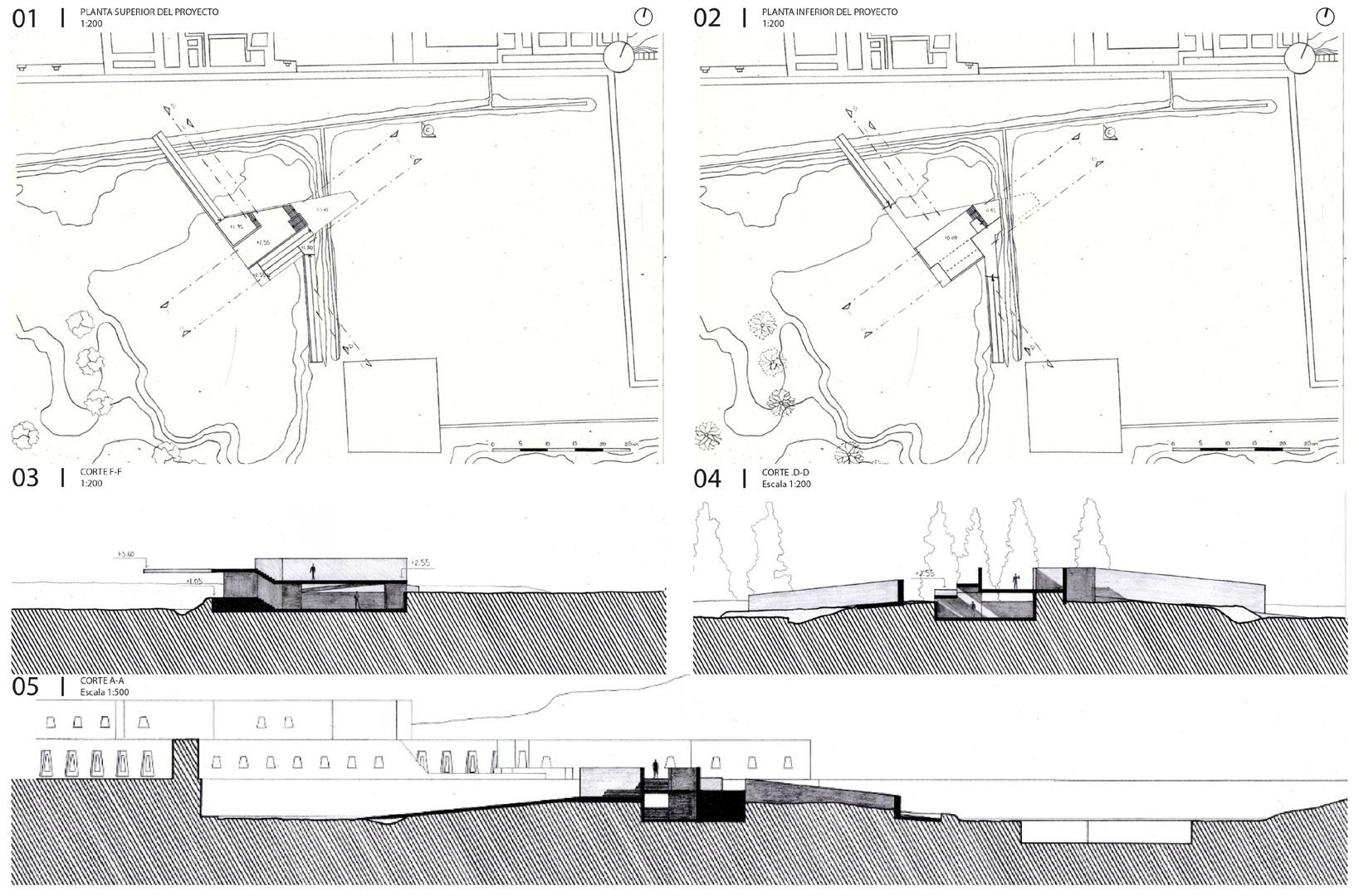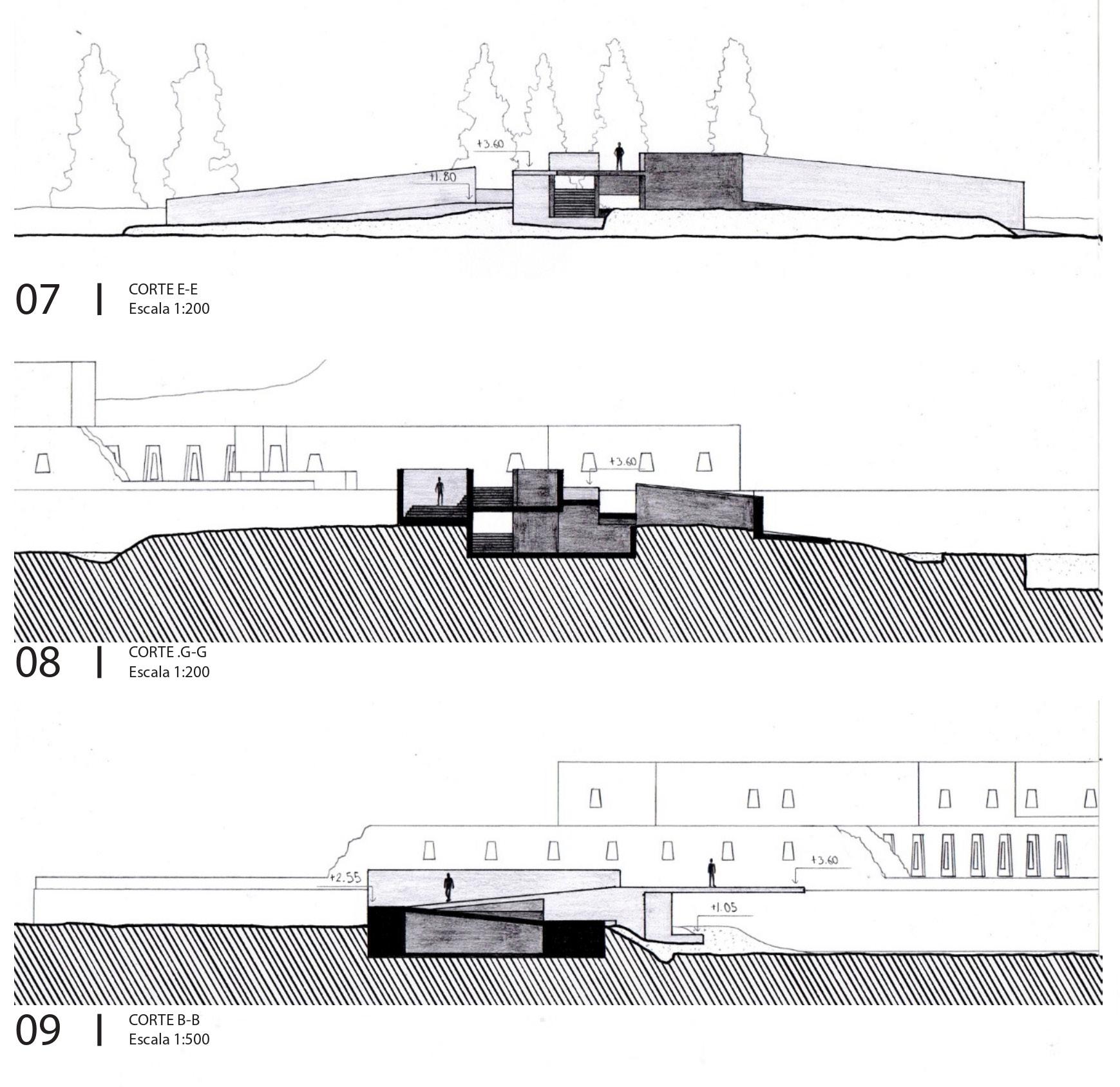 • Esquemas y diagramas que permitan identificar, espacios, recorridos, proporciones, composición, luz-sombra, interior-exterior, plataformas, recinto, bordes, agua etc.