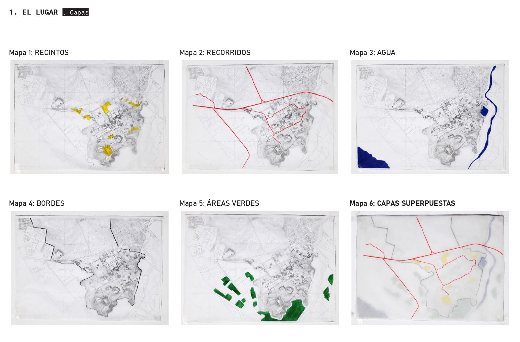 • Mapas en diversas escalas que identifiquen los sistemas que intervienen en el territorio: topografía, agua, entorno urbano, entorno patrimonial, clima, visuales, vegetación.