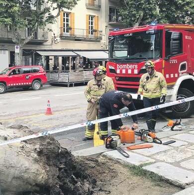 Efectivos de bomberos retiraban ayer un árbol de grandes dimensiones caído en una rambla de Arenys de Mar. ACN POLÍTICA