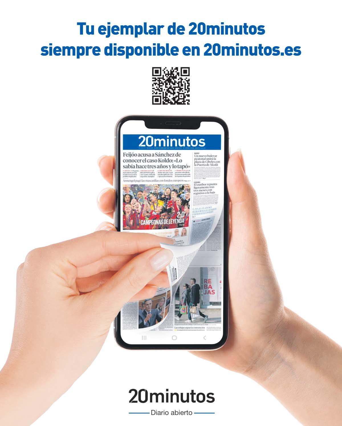 lectores@20minutos.es Imprimen Henneo Print S.L., S.L.U. Bermont, C. G. Penibética. y CREA Depósito Legal: M-10774-2012 PUBLICIDAD (ALAYANS) Jesús Aspra Rodríguez Director General, Carolina Luengo Responsable Comercial Madrid, Mercé Borastero Directora Comercial Barcelona, María Dolores Gallart Directora Comercial Valencia. Tel.: 91 701 56 00 Coordinación y Tráfico Rafael Martín Operaciones Héctor Mª Benito. Administración Luis Oñate Madrid Calle Canarias, 49. 28045 Madrid. Tel.: 91 701 56 00 Barcelona Passeig de Gràcia, 11. 08007 BCN. Tel.: 93 470 62 50 Valencia Avda. Cortes Valencianas 41. 46015 Valencia Tel.: 96 350 93 38 Andalucía sevilla@20minutos.es Una publicación de 20 MINUTOS EDITORA, S. L. Directora Encarna Samitier Director adjunto Jesús Morales Subdirectores: Raúl Rodríguez y Alex Herrera Redactores jefe: Chema R. Morais, Melisa Tuya, Héctor M. Garrido Coordinadora cierre: Susana Gozalo Coordinador Seo: Armando Hueso Multimedia: Jorge París © 20 Minutos Editora, S.L. Todos los derechos reservados. Adicionalmente, a los efectos establecidos en los artículos 32.1 y 33.1 de Ley de Propiedad Intelectual, 20 Minutos Editora, S.L. hace constar, respectivamente, la correspondiente oposición y reserva de derechos, por sí y por medio de sus redactores o autores. HENNEO MEDIA. S. A. Presidente Fernando de Yarza López-Madrazo Consejero Delegado: Iñigo de Yarza López-Madrazo Director Editorial y de Comunicación: Miguel Ángel Liso Tejada INNOVACIÓN DIGITAL Miguel Madrid Cruz 20MINUTOS —Dilluns, 3 de juny del 2024 15