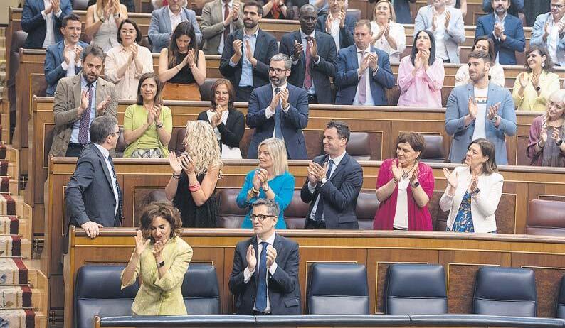 La bancada del PSOE aplaude a su portavoz durante el pleno de ayer en el Congreso de los Diputados. EDUARDO PARRA / EP