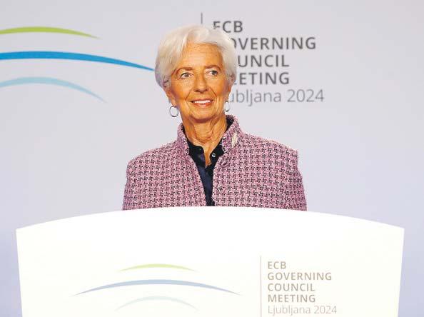 inflación–, pero mantuvo los tipos invariables en verano. Según argumentó el BCE en su comunicado, la decisión de bajar los tipos de interés en octubre se basa en «la evaluación actualizada de las perspectivas de inflación, la dinámica de la inflación subyacente y la intensidad de la transmisión de la política monetaria». «La infor-