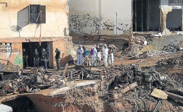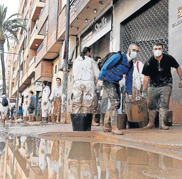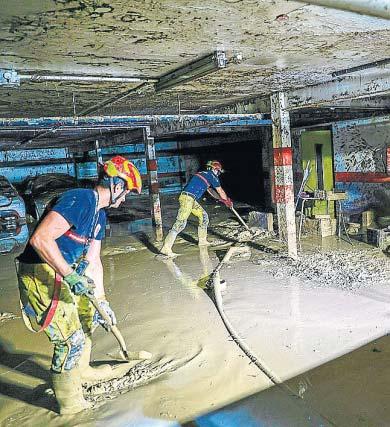 vestigador de la Universitat Politècnica de Valencia (UPV). Estos problemas pueden ser por descendimientos de la cimentación o fisuraciones, las cuales pueden aparecer en el sótano o en todo el edificio, apunta. Junto a esto, Tobaruela subraya otro problema actual: el estado del alcantarillado. Está al límite de su capacidad y eso conlleva que sótanos ya desaguados se inunden de nuevo porque el agua vuelve a rebosar. «Este edificio se desaguó [hace una semana], pero parece que hubo una nueva avenida. Todo el alcantarillado de la ciudad está comprometido. Entonces, el agua y el barro que echas en un sitio se acaba atrancando y saliendo por donde puede. Y a veces tienes que volver sobre tus pasos y repetir la operación», dice con resignación. «Aquí hay trabajo para meses. Espero que esto no se desinfle. En un principio, la imagen era muy dramática y poco a poco esto irá recuperando la normalidad, pero queda el trabajo fino. Y el trabajo fino no es tan visible como los primeros días. Aquí hay trabajo para meses, o incluso años», concluye. ●
