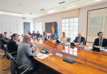 pañol. Se prevé que sean la ministra de Trabajo, Yolanda Díaz, y los ministros de Industria, Jordi Hereu; Agricultura, Luis Planas, y Economía, Carlos Cuerpo, los que acompañen en la reunión a Sánchez, que ayer se vio también con los sindicatos y la patronal, con los que acordó abrir una mesa de diálogo social para canalizar la respuesta a las tasas anunciadas. Sánchez ya avanzó en varias ocasiones que la respuesta de la UE a los aranceles de Trump sería «proporcional» y de «avance y apertura hacia el mundo», con ayudas a los sectores que se viesen afectados por unas medidas que el Ejecutivo considera tan «injustas» como «injustificadas». La vicepresidenta primera, María Jesús Montero, concretó ayer que las ayudas irán a sectores como el acero o a los