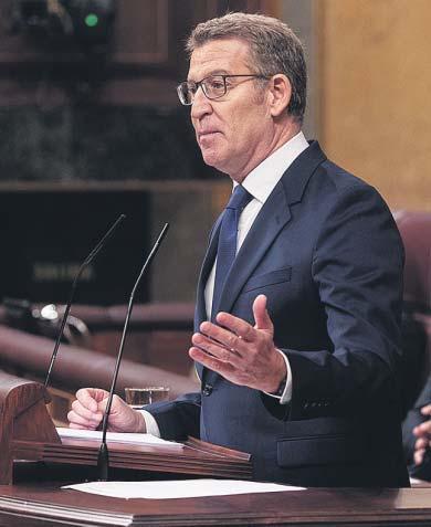 inicial–, pero instó a que se produzca en «un proceso negociador y con masa crítica de más países con peso» . Esto molestó a Sánchez, que lo acusó de «ambigüedad calculada»: «¿Esa es su política internacional? ¿Depender de lo que digan y hagan otros? Es la nada, el silencio incómodo, no responde porque ni puede ni sabe. Quien decide es José María Aznar». «Lo más urgente es el alto al fuego, la liberación de rehenes, ayuda humanitaria y evitar una escalada», señaló Feijóo, y deslizó que algunos miembros del Gobierno se muestran «comprensibles con el vil ataque» que Hamás perpetró el pasado mes de octubre. Así, pidió a Sánchez que no crea que «una sola persona (por él)» puede arreglar «en un mes un conflic-