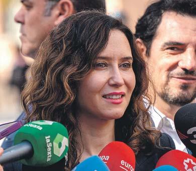 te de Ayuso] se le ha ido la mano con la dosis de populismo en este caso», criticó. Por la mañana, el líder del PP, Alberto Núñez Feijóo, separó a la presidenta de los hechos investigados, destacando que «ella no tiene ninguna inspección de la Agencia Tributaria», mientras que el portavoz del PP en el Congreso, Miguel Tellado, se alineó con la tesis de la «cacería» dirigida desde el Gobierno. Ayuso trasladó que conocía que su pareja sentimental estaba siendo investigado. «Lo que él está haciendo ahora mismo es afrontar una inspección de Hacienda», dijo, si bien el procedimiento ya está judicializado ● M. TRAGACETE