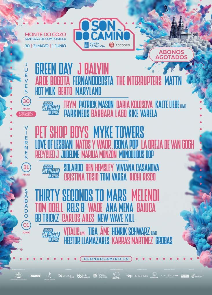 Combina de manera explosiva el indie con la música urbana. Actúan Green Day, Pet Shop Boys, Myke Tower, J Balvin, Thirty Second to Mars, La Oreja de Van Gogh, Rels B, Natos y Waor, Melendi, Ana Mena, Love of Lesbian... Y en el escenario Son Electro de música electrónica estarán Tiga y Vitalic, entre otros. Santiago de Compostela. Monte do Gozo. osondocamino.es