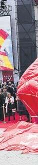 O 2 Exhibición de paracaidismo. Un paracaidista aterriza en la Puerta del