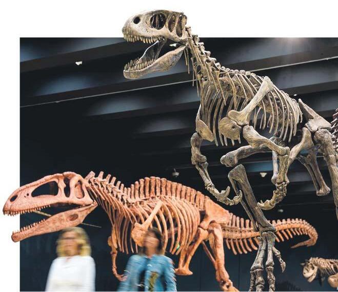 Un Tyrannotitan chubutensis y un condorraptor replicados en la exposición Dinosaurios de la Patagonia. FUNDACIÓN LA CAIXA
