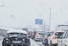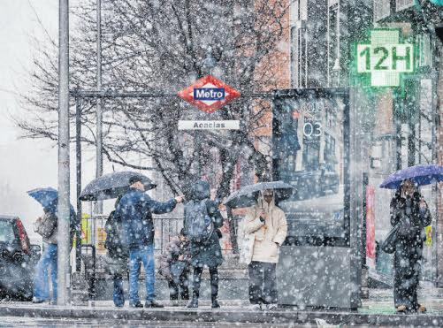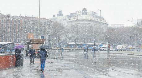 LA FUGAZ nevada corta la carretera A-6, deja vehículos atrapados, cierra colegios y llega a la capital en hora punta EL CANAL evacúa agua de cuatro presas de la región por las lluvias actuales y la previsión de nuevos temporales