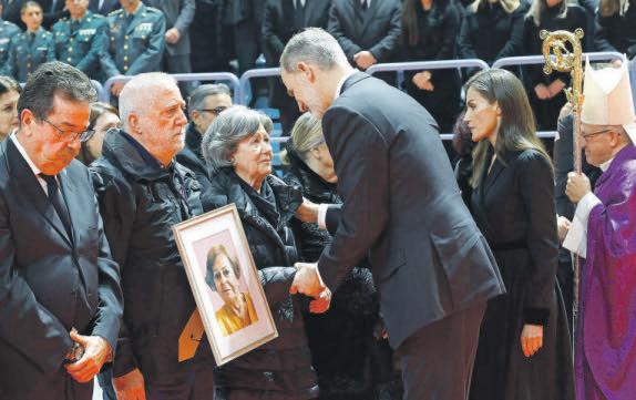 Al término del acto, que duró casi dos horas, Felipe VI y Letizia se acercaron a los familiares de las víctimas para darles el pésame. Los Reyes saludaron cariñosamente a niños que se encontraban en sillas de ruedas y a otros heridos. También se acercaron a Fidel, igualmente hijo de Natividad de La Torre, y a la abuela de la niña de seis años que sobrevivió a la tragedia. Otras autoridades también saludaron a los presentes, mientras se oían aplausos y gritos de «Viva el rey, viva la reina». l