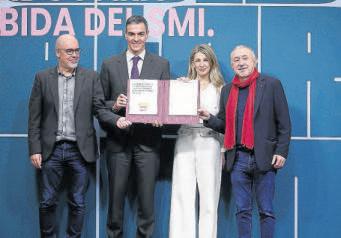 El Gobierno firmó ayer con los sindicatos el acuerdo para subir el salario mínimo interprofesional (SMI) hasta 1.221 euros brutos al mes en 14 pagas. El acto estuvo capitaneado por el