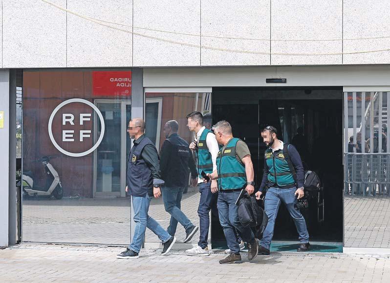 La Guardia Civil, ayer en la sede de la Federación Española de Fútbol, en Las Rozas (Madrid). J.J. GUILLÉN / EFE