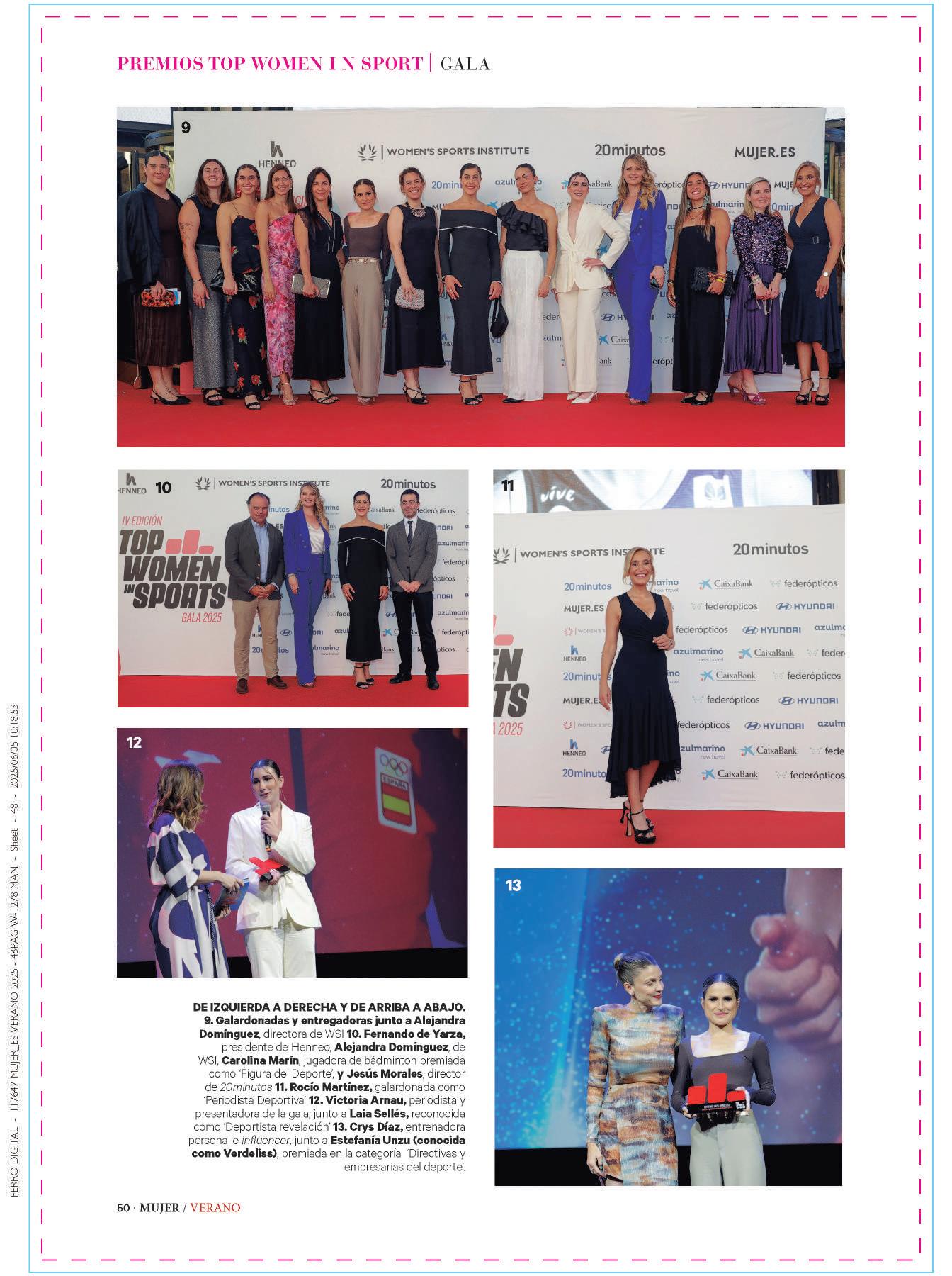 l deporte femenino volvió a ser el gran protagonista el pasado 29 de mayo en el centro de Madrid, en la celebración por todo lo alto de la cuarta gala Top Women in Sports, que reconoció un año más a las 100 mujeres más influyentes del deporte español y su labor en un emocionante acto. Con Alejandra Domínguez al frente del Women’s Sports Institute (WSI), y gracias a un jurado compuesto por líderes y referentes del deporte, la comunicación, la gestión y la innovación como son Pau Gasol, Ona Carbonell, Sandra Sánchez, Noemí de Miguel, Beatriz Álvarez, Encarna Samitier, José Hidalgo, Jennifer Pareja, Marisol Casado, Elisa Aguilar, Carlota Castrejana y Natalia Flores, el instituto volvió a elegir a las mayores referentes del deporte femenino español. Todo ello en una gala en la que se involucraron desde organismos deportivos e instituciones públicas, hasta empresas privadas y deportistas, entre otros actores del sector